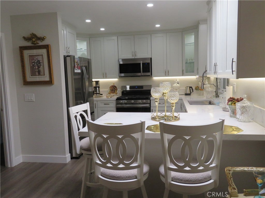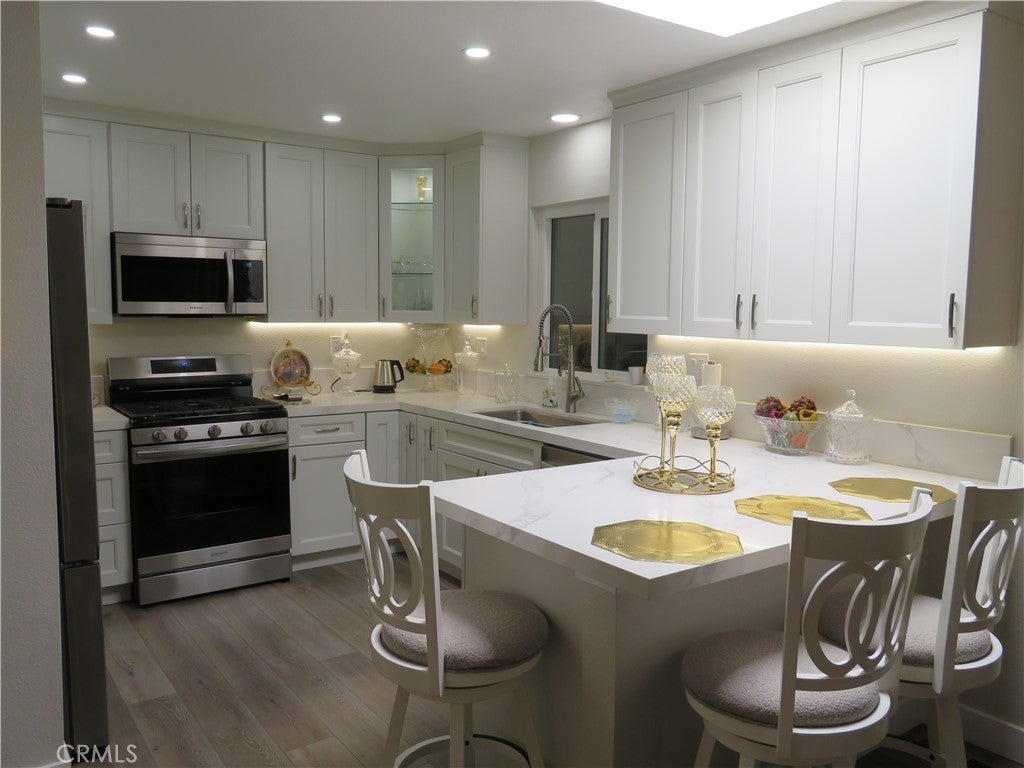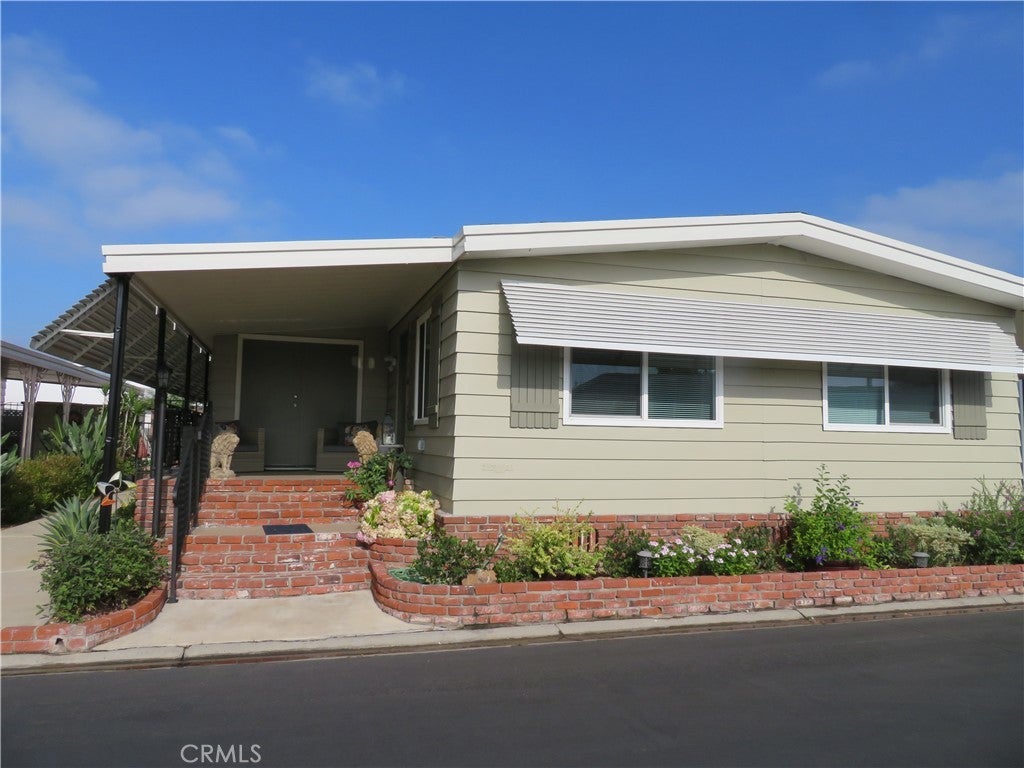 This Lovely Home is a Masterpiece in disguise, a one of a kind could be a Casitas. Beautifully Remodeled. Drywall interior, Dual pane windows, Wood Laminate flooring, New HVAC and New Electric. Plumbing is copper. The New Kitchen features Self closing White Cabinets, Quarts Counters and Breakfast Bar. Stainless Steel Appliances, A 5 Burner Gas Stove, Dishwasher and built-in Beverage Refrigerator are a plus. And A skylight brings the outside-in. The main Bathroom features a eye appealing double size Marble Surround walk-in Shower, and A quarts covered Vanity. The large Main Bedroom features a Walk-in Closet. The exterior of this Lovely Home is surrounded by lush Landscaping front, side and rear. Must see to appreciate. Plus the Front and Rear Comfortable Patios. The storage sheds and attached Carport are both covered. Additional Guest Parking is near by. Call today to make your appointment to see this Lovely Home.