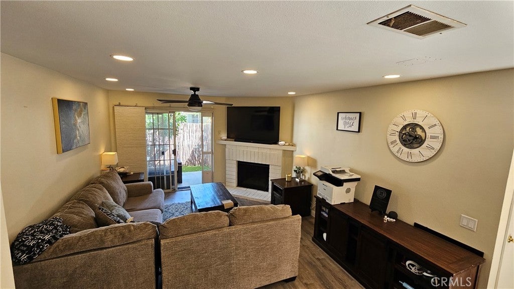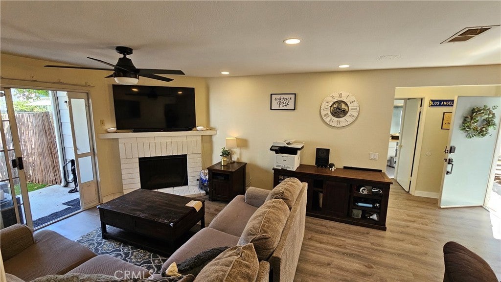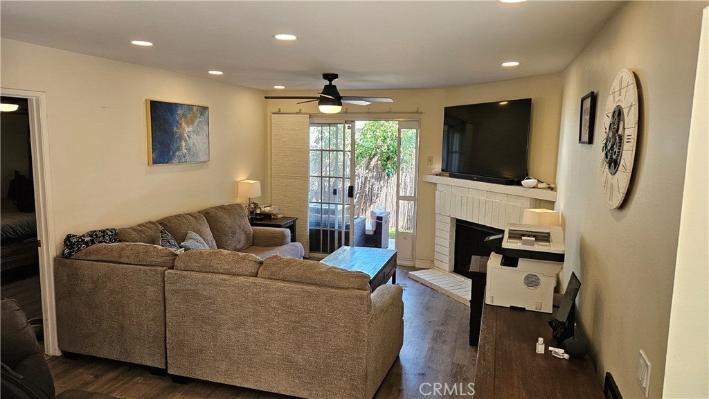 Welcome to this Main level Condominium in a Prime Location of Orangethorpe Village offering an open floor plan. Location offers easy access, location privacy and pool view. The floor plan offers two huge bedrooms and two bathrooms. You won't believe the amount of space the bedrooms offer. Each of the bdrms are situated on the either side of the living room, dining area and kitchen. The living room has a gas burning fireplace and a sliding glass door leading out to the patio. The patio offers plenty of room for outdoor entertaining as well as storage. The Laundry area is conveniently located in a private room off the patio. This corner unit offers pleasing views of the association pool and jacuzzi. Upgrades include new flooring, recessed lighting, new stove/double oven, full counter to cabinet backsplash in kitchen, dishwasher and microwave, fresh paint, new toilets, and 3 new top notch ceiling fans in both bedrooms and in the living room. A/C and Heat upgraded in May 2022 and water heater was upgraded in 2023. Detached Garage unit with storage space. Extra parking space can be purchased through the HOA. HOA pays for water, trash, pool, jacuzzi, exterior maintenance, and yard. Come see this beautiful unit and make it yours!