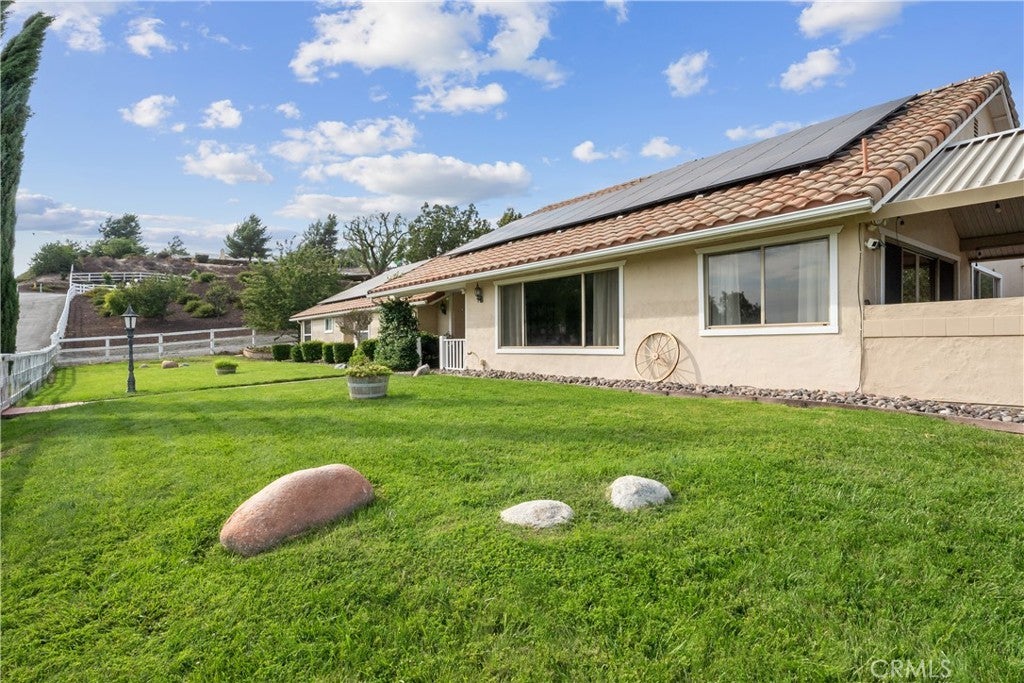 Located in the heart of Temecula Wine Country, this private, gated single-story estate offers 4 bedrooms, 3 bathrooms, and over 3,200 sq. ft. of living space on an expansive 87,991 sq. ft. lot—ideal for a future ADU. Interior highlights include wood and stone flooring, crown molding, and a stacked-stone fireplace. The gourmet kitchen features granite counters, stainless steel appliances, and a center island that opens to the family room and breakfast nook. A formal living room with balcony access provides an inviting space for entertaining or enjoying morning views of hot air balloons. There are two fireplaces: one in the living room and one in the primary suite, uniquely positioned between the bedroom and bathtub—creating the perfect ambiance while soaking in the tub. The primary suite also offers a bath, walk-in closet, and patio access. Secondary bedrooms are generously sized, with two sharing a Jack-and-Jill bathroom. A versatile bonus room provides the ideal space for a home office, gym, or playroom. The backyard is designed for resort-style living with a sparkling pool, full-length covered patio, and elevated sun deck with panoramic views. The property also includes fruit trees, RV parking, western-style outbuildings, and fully paid-for solar panels for energy efficiency and cost savings. All just minutes from award-winning wineries, Lake Skinner, shopping, and top-rated schools.