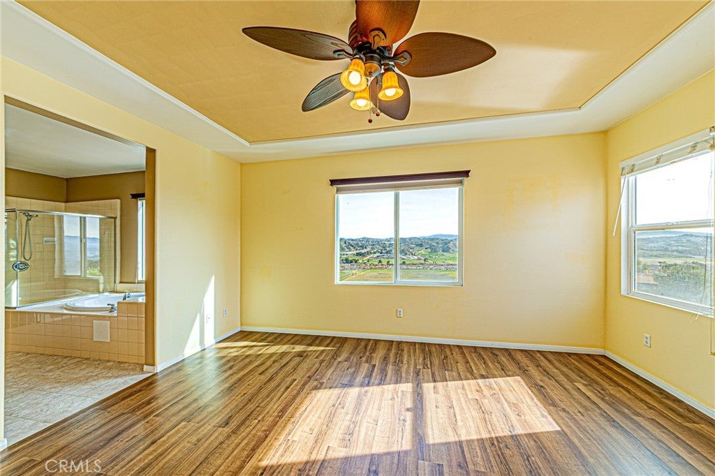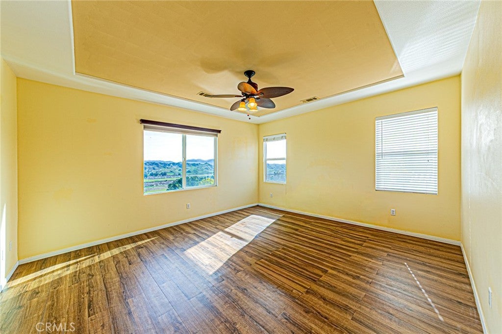 This is a GREAT VIEW property on a cul-de-sac in Hasley Hills which is the most attractive Castaic location. Richmond American Homes built this house at November, 2003. This home has a large kitchen with lots of cabinets space for storage, granite counters, lighted walk-in pantry, central island, upgraded recess lighting throughout, as well as stainless steel appliances. It has approx. 3160 sq ft of living space with three car garage. There are four bedrooms upstairs plus a good size loft and three baths. Ceiling fans of all rooms and attic fan cut electric bill. This home has much upgraded landscaping with natural stones and several palm trees. House is quite bright and cool during whole day. Front of the house has plenty of extra parking space and backyard includes beautiful patio and breathtaking view. This is a well-cared and upgraded home which has excellent structural and plumbing condition. This property does not have Mello Roos.