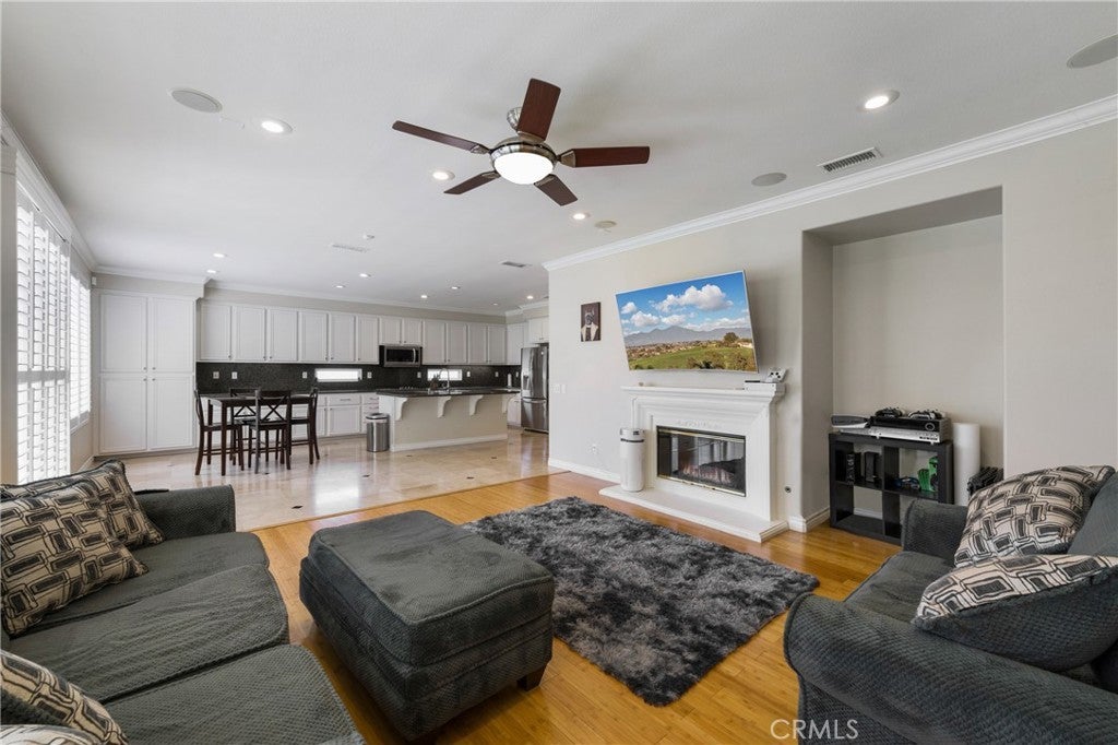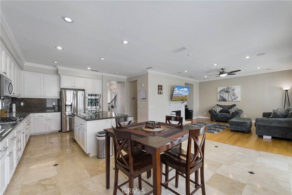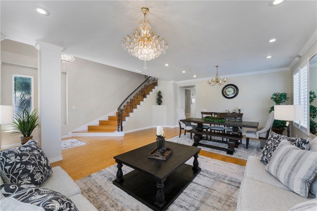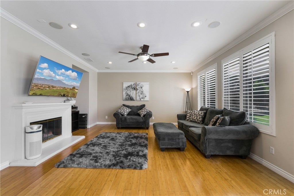 Stunning Home in the Foothills of Corona, California. Nestled in a tranquil community of just 16 homes, this beautifully updated four-bedroom, 2.5-bath residence offers the perfect blend of luxury and comfort. Located off Green River, just one exit from Yorba Linda and with convenient access to the 91 freeway, this home boasts stunning mountain views and a serene atmosphere. Spanning 3,274 square feet, the open and airy floor plan features a spacious living area with a warm fireplace, ideal for cozy evenings. The recently remodeled kitchen showcases modern finishes, complemented by elegant plantation shutters, crown molding, and recessed lighting throughout. The wrought iron staircase adds a touch of sophistication, leading to four generous bedrooms designed for relaxation and serenity. Ceiling-mounted speakers enhance the functionality and comfort of this stunning home.Located close to Metro Lake and surrounded by nature, this property is perfect for those seeking both adventure and convenience. Don’t miss the opportunity to make this exceptional home your own.