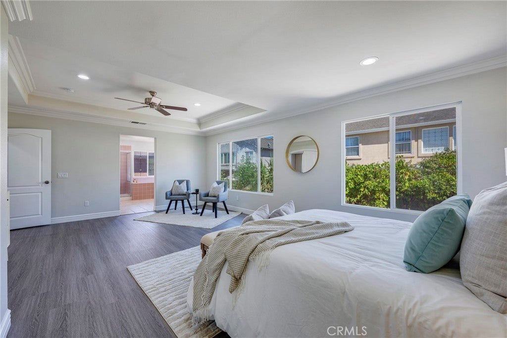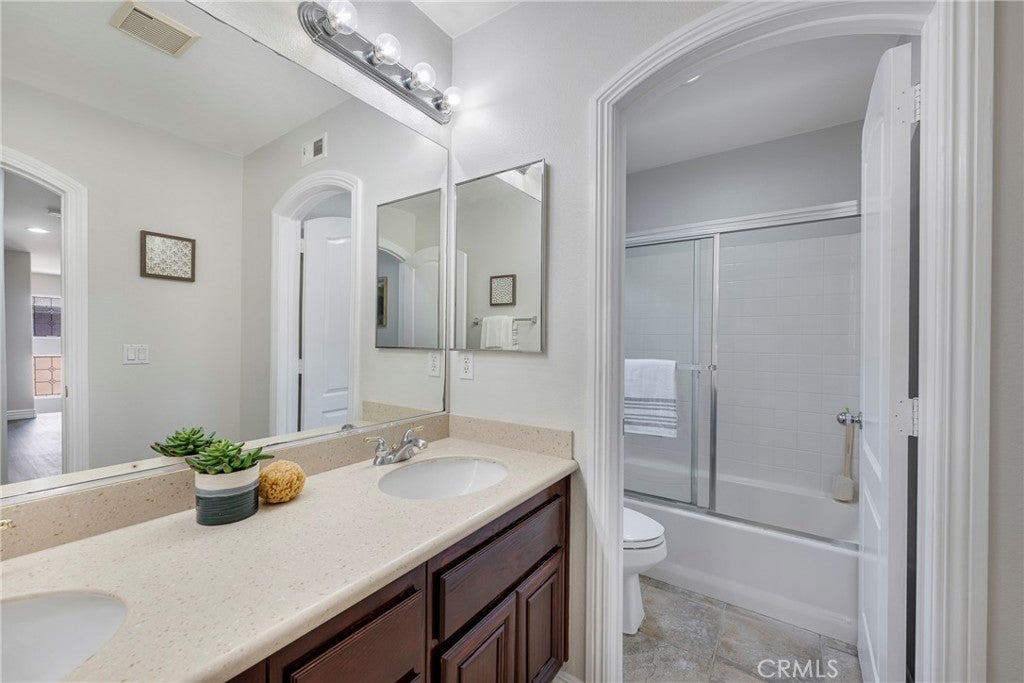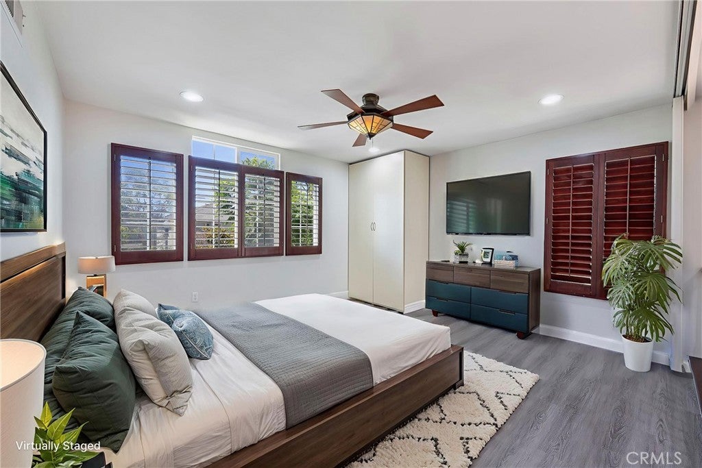 Discover exceptional living in the resort-style, guard-gated community of Dominguez Hills Village, where residents enjoy beautifully maintained grounds, a clubhouse, gym, swimming pool, tennis and basketball courts, parks, and scenic walking paths. This highly sought-after neighborhood offers comfort, security, and convenience, located near Dignity Health Sports Park, CSU Dominguez Hills, shopping, and major freeways. Inside, this home features 3 bedrooms plus a versatile loft that can easily serve as a 4th bedroom, complete with a wardrobe and sliding partition wall for added privacy. Thoughtful upgrades throughout enhance both comfort and efficiency. Plantation shutters and recessed LED lighting create a bright, energy-smart environment, while the owned and FULLY PAID OFF SOLAR SYSTEM and brand-new water heater help keep monthly utility costs low. Durable luxury vinyl plank and tile flooring flow through the living spaces, and ceiling fans in every bedroom ensure year-round comfort. The updated kitchen features a spacious island, walk-in pantry, and stainless steel appliances. It opens seamlessly to the family room, where a cozy fireplace and custom built-ins make for the perfect gathering spot. French doors lead to a private backyard with low-maintenance artificial turf, ideal for relaxing, entertaining, or unwinding after a long day. Upstairs, the primary suite offers a tranquil retreat with crown molding, inset ceiling, ceiling fan, LED recessed lighting, and an ensuite bathroom featuring dual vanities, a soaking tub, and a separate walk-in shower. Down the hall are two additional bedrooms, a hall bathroom with dual sinks and a separate commode/shower room, and a convenient upstairs laundry room complete with cabinetry and a wash basin. Don’t miss your chance to own a beautifully upgraded home in one of the South Bay’s most desirable guard-gated communities. Schedule your private tour today and experience everything Dominguez Hills Village has to offer! For Open Houses and showings, please enter the community via the gate on Birchknoll Dr. This property qualifies for a $20,000 GRANT PROGRAM for qualified buyers. Ask your agent for details!