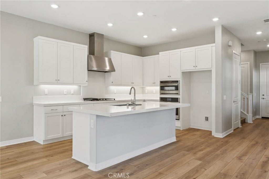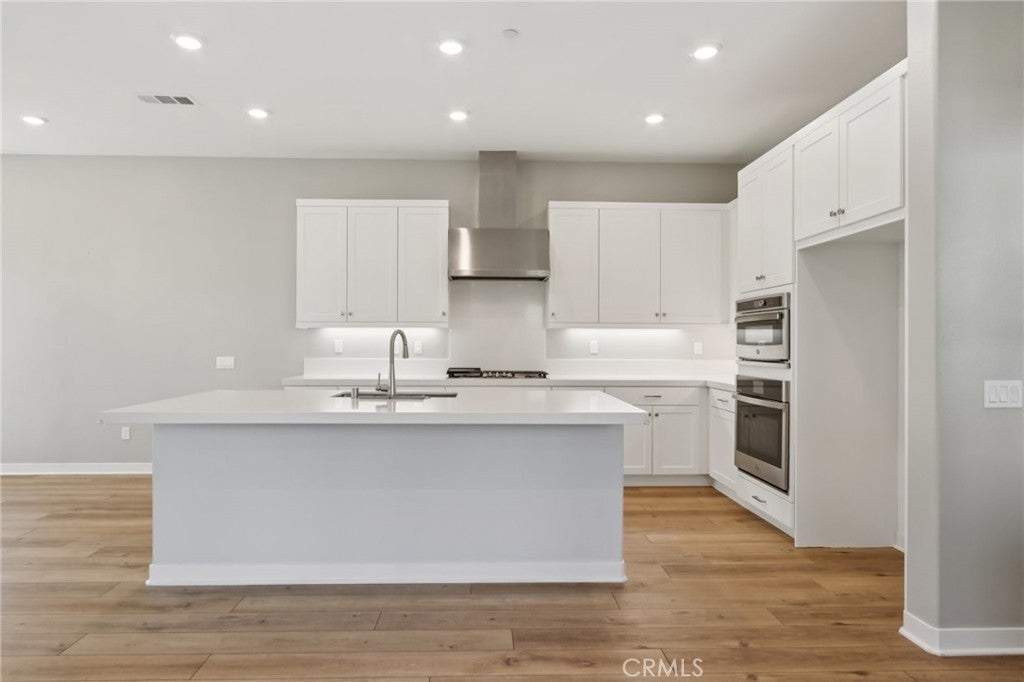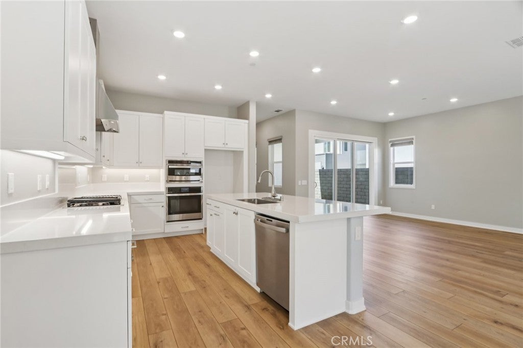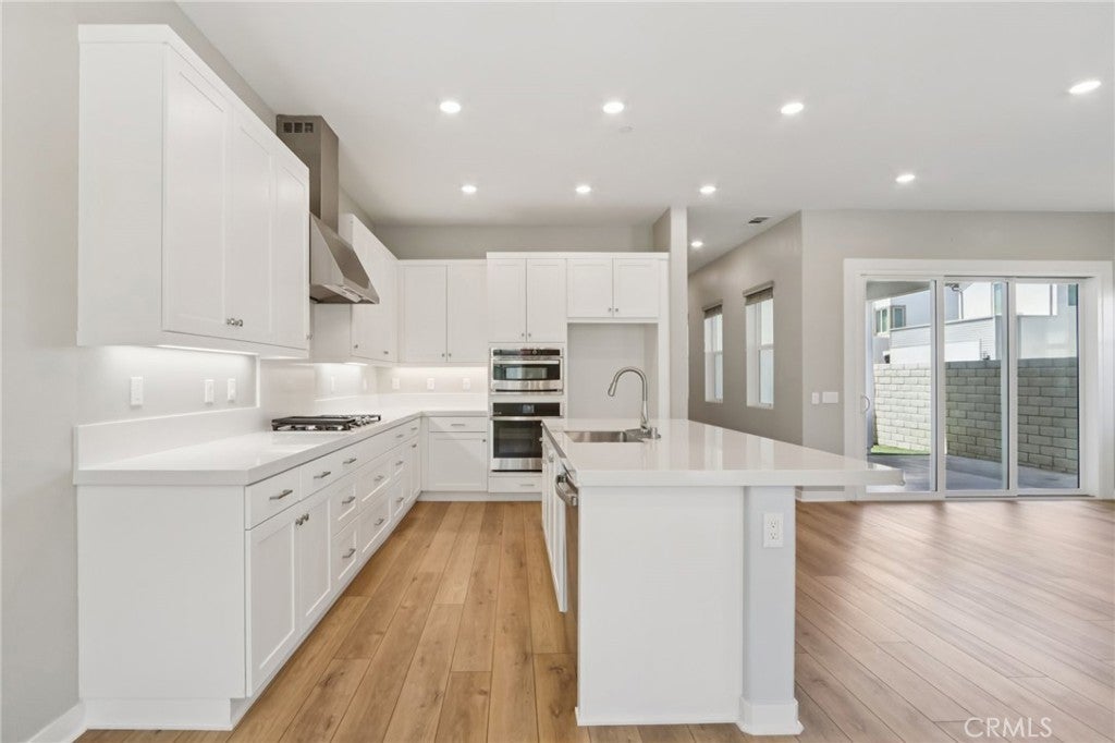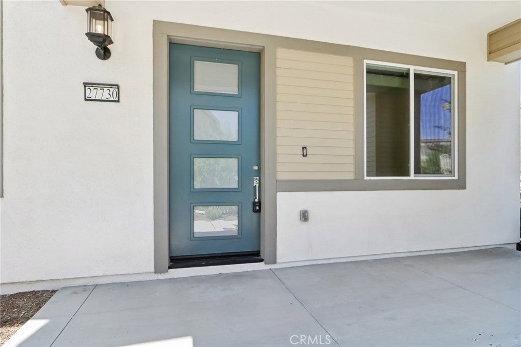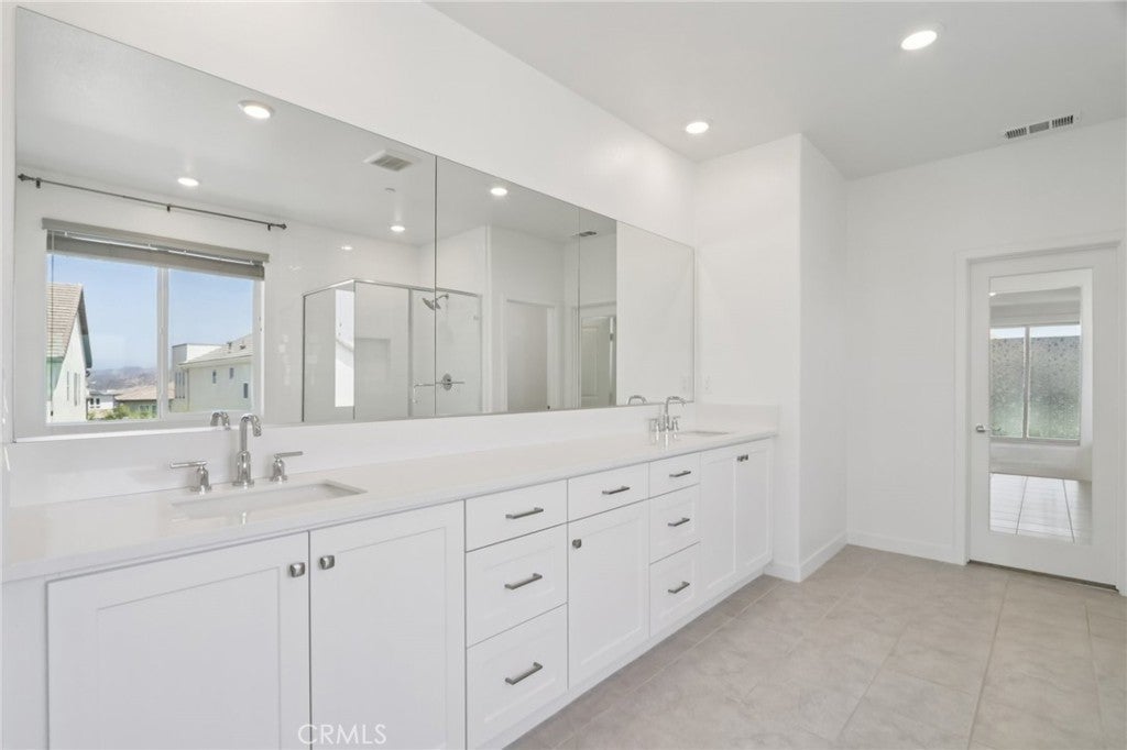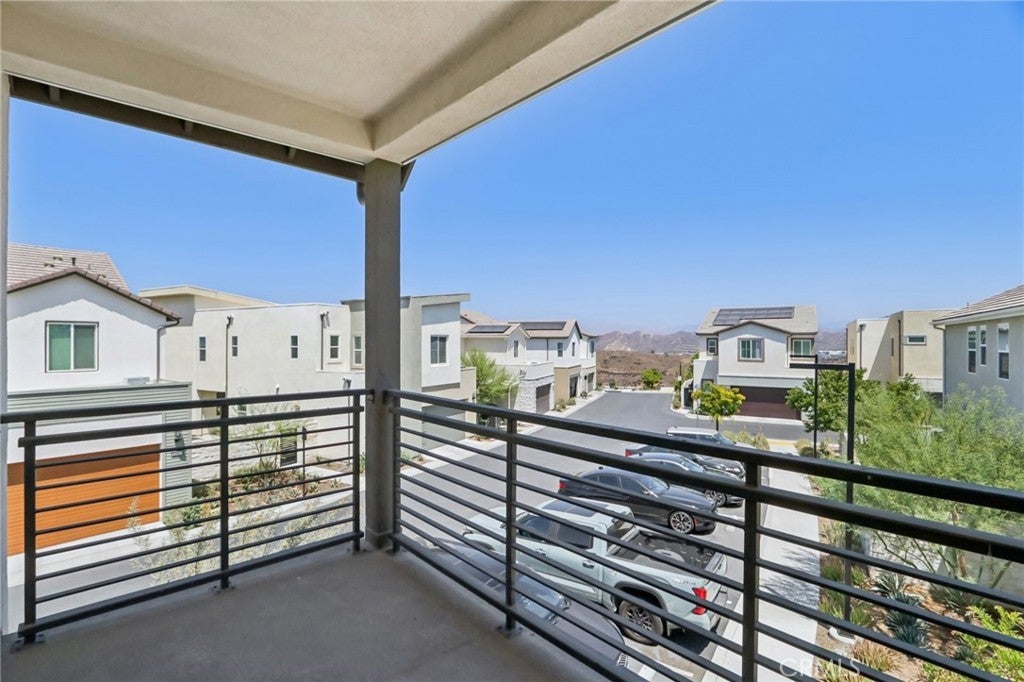 Welcome to this stunning, nearly new 3-bedroom, 3.5-bathroom home in the highly sought-after FivePoint community—where modern living meets effortless comfort. Boasting over 2,400 square feet of thoughtfully designed space, this home features an open floor plan flooded with natural light, creating a bright and inviting atmosphere throughout. Step into the expansive great room where luxury vinyl plank flooring, high ceilings, and oversized windows enhance the airy ambiance. The seamless flow between the living area, dining space, and chef-inspired kitchen makes entertaining and everyday living a breeze. The kitchen is a true showpiece, equipped with a large center island, sleek quartz countertops, stainless steel appliances, and an oversized custom pantry with built-in shelving—perfect for those who love to cook and gather. Upstairs, retreat to the expansive primary suite featuring a private balcony with breathtaking views, a spa-like en-suite bath with dual vanities, a soaking tub, a glass-enclosed walk-in shower, and an impressive walk-in closet. Two additional bedrooms offer flexibility for guests or a home office, one with its own en-suite bath and the other adjacent to a full bath. Additional modern conveniences include an upstairs laundry room with custom door and ample storage, a powder room on the main floor, a whole-home water filtration system, and custom blinds throughout. The spacious covered patio extends your living space outdoors—ideal for dining al fresco or simply relaxing under the stars. Enjoy the unbeatable lifestyle of FivePoint with access to resort-style amenities such as pools with cabanas, BBQ areas, a community garden, playgrounds, scenic walking trails, and a contemporary clubhouse perfect for gatherings. All this, just minutes from Magic Mountain, top-rated schools, premier shopping and dining, and easy freeway access. This home perfectly blends style, functionality, and convenience—don’t miss the opportunity to make it yours!
