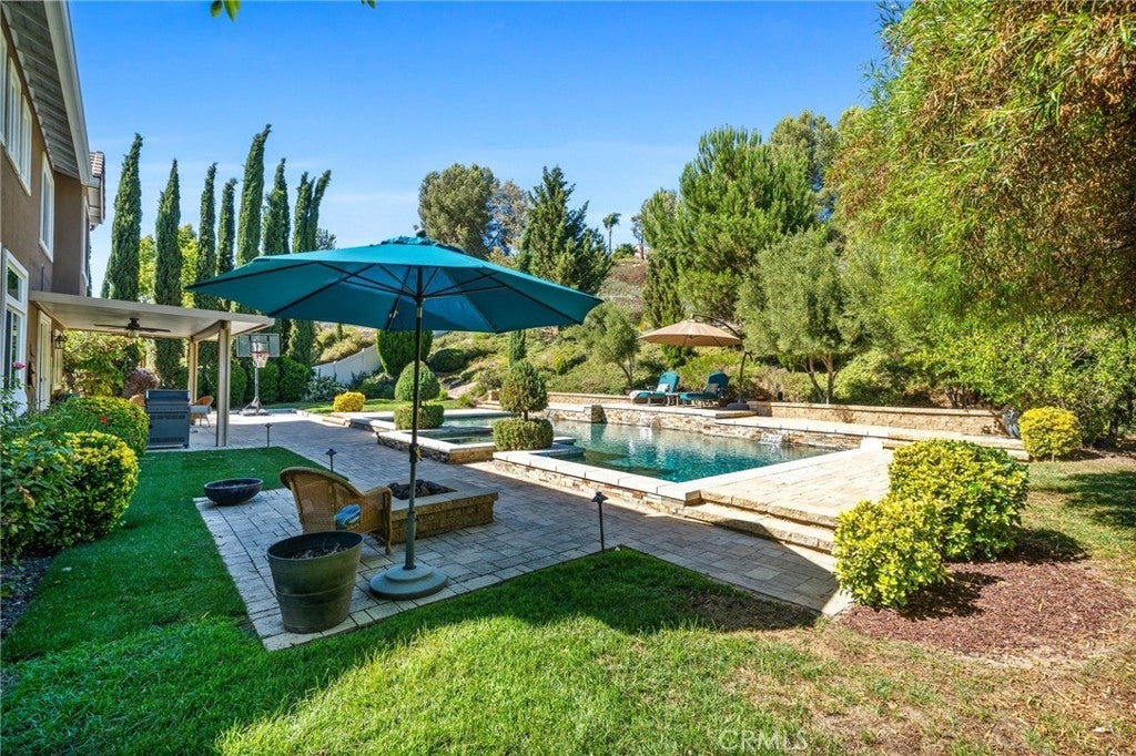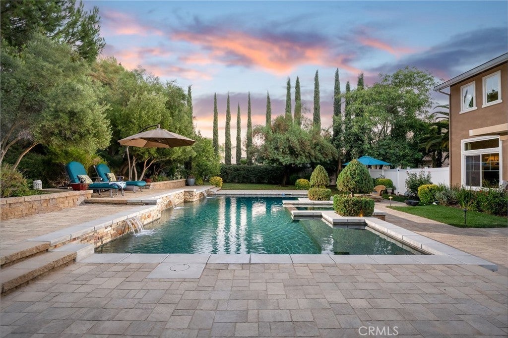 Stunning 4-BEDROOM (with 5th Bedroom Potential), 3.5 BATHROOM home in Temecula’s highly sought-after WOLF CREEK community! Nestled on just over a half acre of a gorgeous forest-like retreat, highlighted by an oversized, breathtaking POOL—with SWIM-UP STOOLS, WATERFALL, built-in SPA, and COVERED PATIO with OUTDOOR FANS, and BBQ area. Perfect for Relaxing or Entertaining. The Front Door Entry welcomes you into an OPEN CONCEPT LIVING ROOM and FORMAL DINING ROOM. The LARGE WINDOWS offer an abundance of NATURAL LIGHT throughout. The GOURMET KITCHEN features a LARGE ISLAND, FARMHOUSE SINK, STAINLESS STEEL APPLIANCES, and WALK-IN PANTRY which flows seamlessly into the spacious family room with soaring ceilings and a cozy fireplace —all with Expansive views of your PRIVATE OUTDOOR PARADISE. The 1st LEVEL is completed by a PRIVATE EN-SUITE Bedroom with Bathroom (currently used as an office), plus a convenient POWDER ROOM for guests and a LAUNDRY ROOM. The 2nd LEVEL offers a versatile, LARGE LOFT AREA which could be used as a PLAY AREA, OFFICE, or (as mentioned) a possible 5th BEDROOM. The OVERSIZED PRIMARY SUITE-RETREAT features a SITTING AREA, luxurious EN-SUITE BATH with SOAKING TUB, Separate SHOWER, DUAL VANITIES, and TWO WALK-IN CLOSETS. In Addition, there are TWO SECONDARY BEDROOMS and a FULL BATHROOM with a DOUBLE VANITY. This amazing home blends COMFORT, STYLE, and PRIVATE OUTDOOR LIVING. Just moments away from TOP-RATED TEMECULA SCHOOLS, PREMIER SHOPPING and DINING, and the famous TEMECULA WINE COUNTRY.