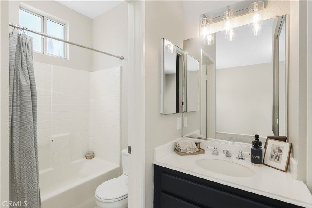 WELCOME HOME FOR THE HOLIDAYS IN ANAHEIM HILLS! Enjoy comfort, style & privacy in this beautifully updated 2-bedroom, 2.5-bath townhouse offering 1,035 SQFT of bright & thoughtfully designed living space. This home features no one above or below & a rare attached 2-car side-by-side garage w/ laundry conveniently located inside. The heart of the home is the beautifully remodeled kitchen, showcasing bright white cabinetry with/ new hardware, quartz countertops, a brand-new stove, new microwave & a new stainless steel farmhouse sink & faucet. Directly across from the kitchen, a remodeled built-in desk/workstation provides the ideal setup for working from home or everyday organization. The interior is enhanced w/ all-new Sherwin Williams designer paint, giving every room a fresh, modern & inviting feel. The spacious living area is filled w/natural light & features a new chandelier, adding warmth & elegance. Upstairs, both bedrooms offer en-suite bathrooms. The primary bedroom features a large walk-in closet for added storage & convenience. Both bathrooms have been refreshed w/ Sherwin Williams naval blue designer paint & new light fixtures for a clean, contemporary look. Enjoy outdoor living on your fenced front porch w/ an enclosed gate, perfect for morning coffee, evening relaxation, or secure outdoor enjoyment.The community HOA offers resort-style amenities including a pool, spa & workout room adding convenience & value to everyday living. Located in the gated Summit Renaissance community in a prime Anaheim Hills location, known for its rolling hills, outdoor recreation & proximity to shopping, dining, parks & award-winning schools. Move-in ready & available just in time for the holidays.