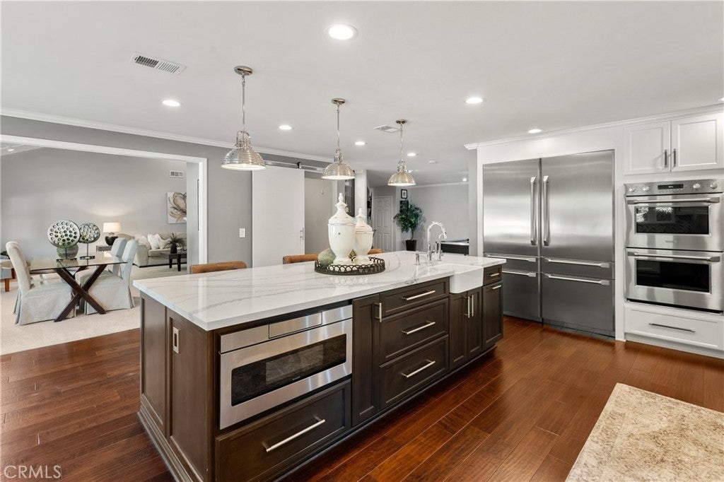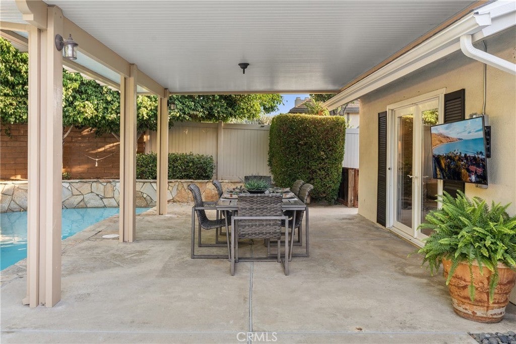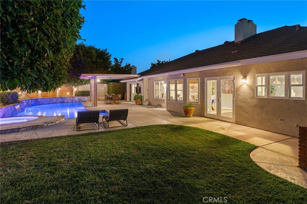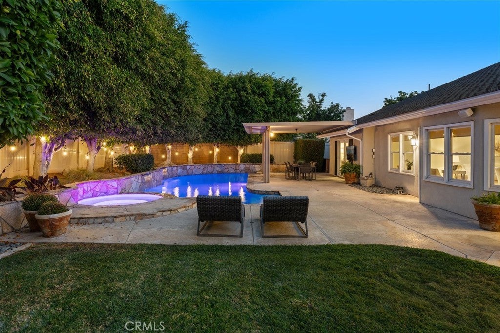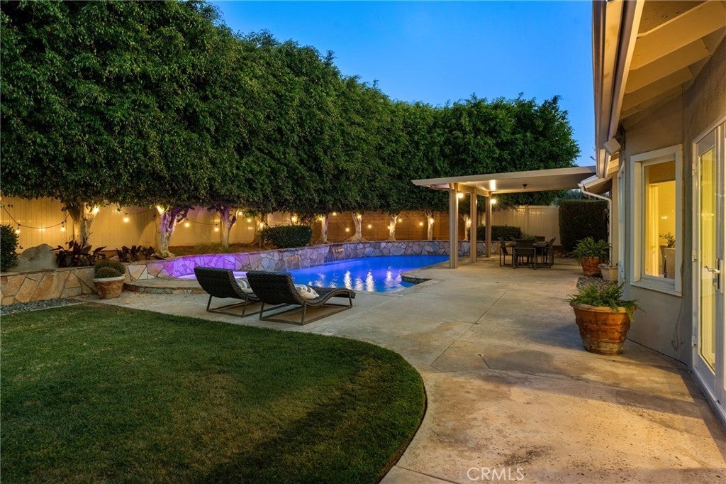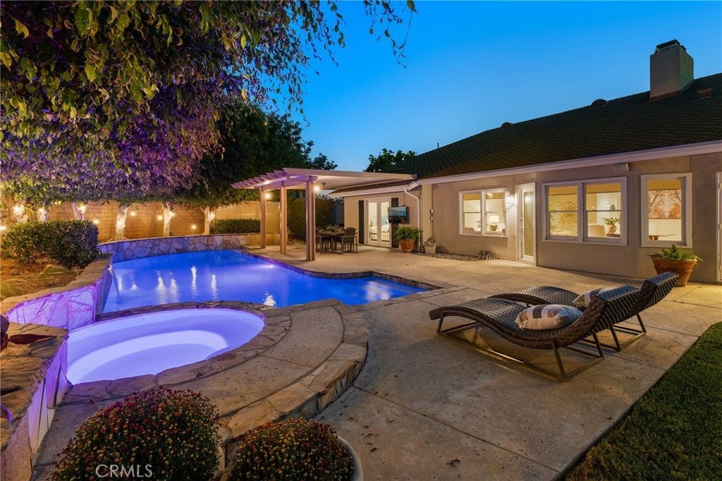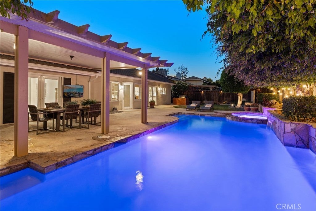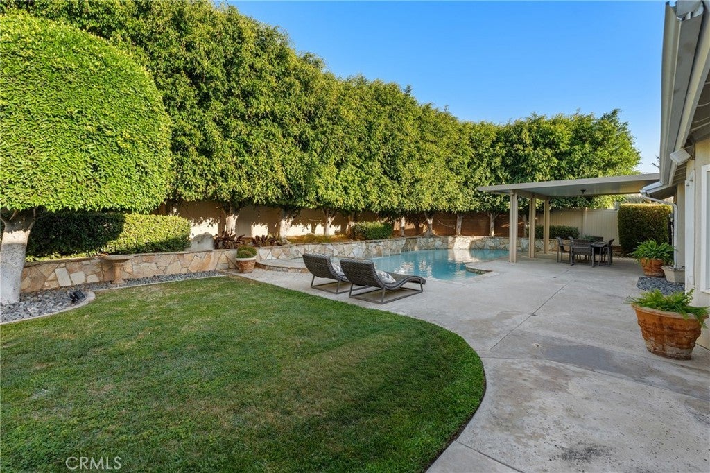 Indulge in the epitome of a single level luxury living in this exquisitely RENOVATED HOME. Boasting 2665 Sq. Ft of meticulously designed living space this 4 bedroom 2 bathroom residence offers unparalleled comfort and sophistication. The rare advantage of a SINGLE LEVEL layout with NO STEPS ensures effortless living. Step inside and be captivated by the expansive OPEN FLOOR PLAN, highlighted by soaring CATHEDRAL CEILINGS. The heart of the home is a spectacular kitchen, a chefs dream come true. Featuring a large seated island, 6 burner gas cooktop + griddle, double ovens, built in GE MONOGRAM REFRIGERTOR & FREEZER, microwave drawer, separate prep sink, filtered drinking water GE MONOGRAM ALPPLIANCES. Bonus, there is a convenient coffee bar with a beverage refrigerator and spacious walk in pantry, two separate trash bins, cabinet organizers. The formal dining area features a fireplace and is currently being utilized as a billiard room. The open living area is inviting and also enjoys a fireplace, cathedral ceilings and another area for family dining. Another special feature is the spacious primary suite featuring sliding doors leading to the outside covered patio and pool area, this suite also enjoys a wonderful bath area with separate soaking tub, walk-in shower and two separate vanities. The advantage of having 4 bedrooms allows for one room to utilized as a home office. Step outside to the very private backyard featuring a 10,000 sq ft level lot with mature trees. Enjoy casual living or entertaining is this very private backyard also featuring a built in LYNX BBQ and swimming pool and spa with beautiful colored lights. The SWIMMING POOL & SPA have just been replastered. Enjoy Al Fresco dining under the covered patio or sun yourself on the open patio. Both sides of the home are spacious and one side is gated for a potential dog run. Beautiful NEW VINYL FENCING surrounds this corner lot home. Enjoy the convenience of an attached 3 car garage with built in cabinets and direct access to the home. This neighborhood is beautiful and has NO HOA! Located near an array of restaurants, this exceptional property is the perfect blend of luxury, convenience and effortless elegance. This is more than a home, it's a lifestyle. Seldom does a single level home without any steps + a 3 CAR GARAGE come onto the market. Don't miss this opportunity.