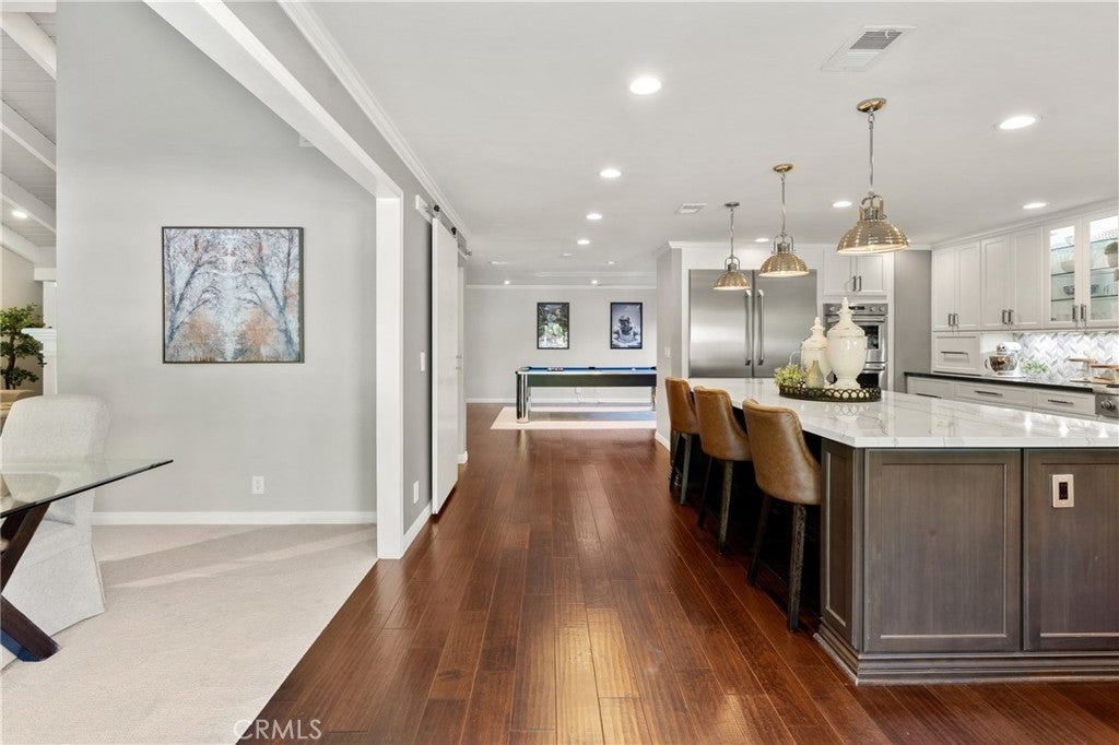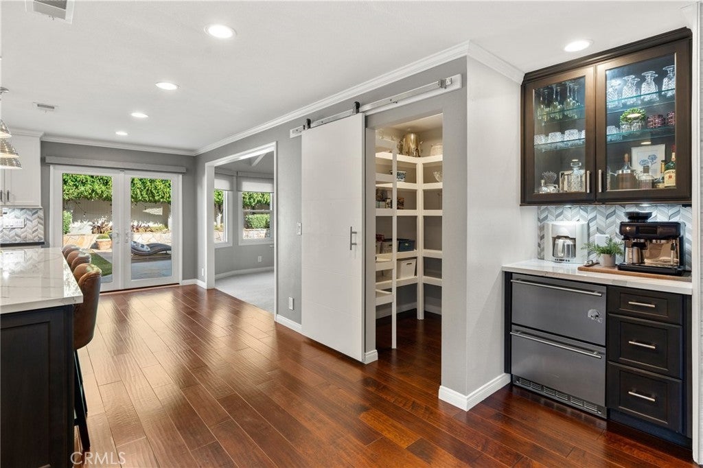 • Interior FeaturesBreakfast Bar, Dry Bar, Separate/Formal Dining Room, Open Floorplan, Pantry, Recessed Lighting, Storage, All Bedrooms Down, Bedroom on Main Level, Main Level Primary, Walk-In Pantry, Cathedral Ceiling(s), Dressing Area, Pull Down Attic Stairs