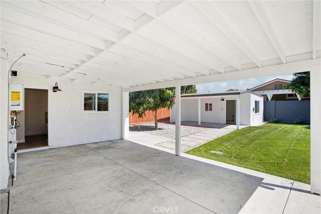 Beautifully Updated Home with a Detached Bonus Room in Prime Santa Ana. Welcome to this beautifully renovated single-story home that blends modern style with thoughtful, high-quality upgrades throughout. This 3-bedroom, 2-bathroom residence features an open-concept kitchen with quartz countertops, custom backsplash, and stainless steel appliances, complemented by dual-pane windows, waterproof laminate flooring, recessed lighting, and matte black fixtures. Both bathrooms are completely refreshed, with no detail overlooked, combining style and functionality. Major system upgrades provide peace of mind, including a brand-new roof, 200-amp electrical panel, central HVAC with new ducting, and a new gas line. Outdoor living is enhanced with a new covered patio, front and back concrete pavers, fresh landscaping with automated sprinklers, and new fencing on both sides of the property for added privacy. The finished garage includes drywall, epoxy flooring, a new garage door, and automatic opener. A detached bonus room with new siding, windows, roof, concrete, and a mini-split system provides versatile space for a home office, gym, or studio. Located near Riverview Golf Course and Santa Ana College, with quick access to local shops, restaurants, and more.