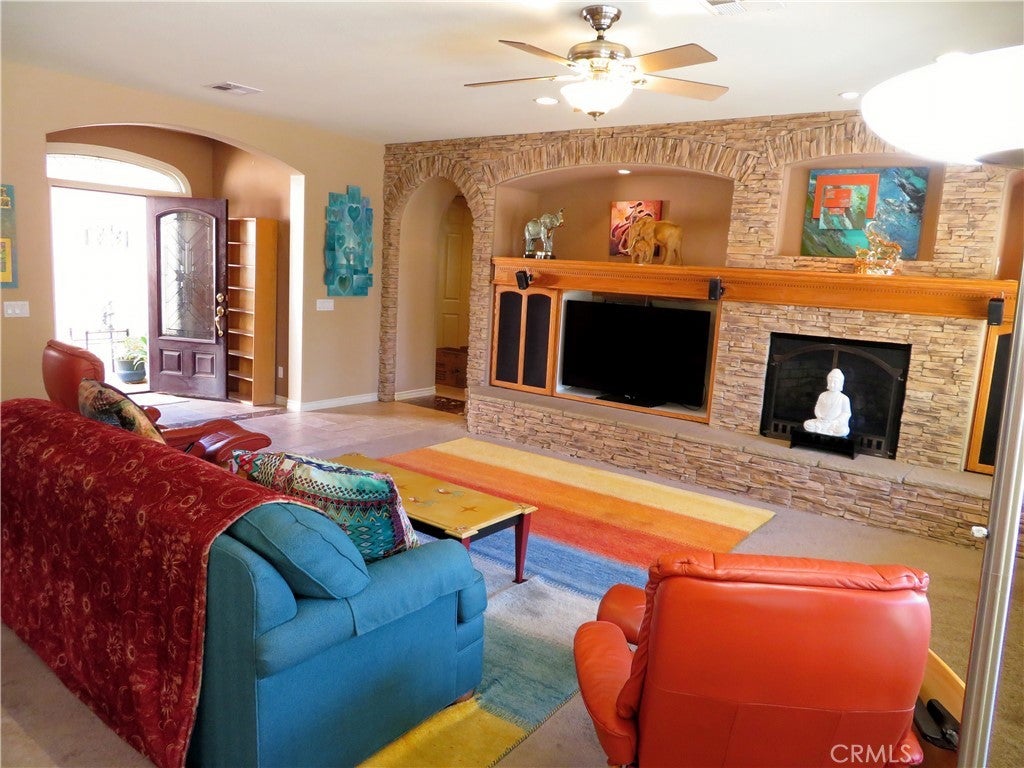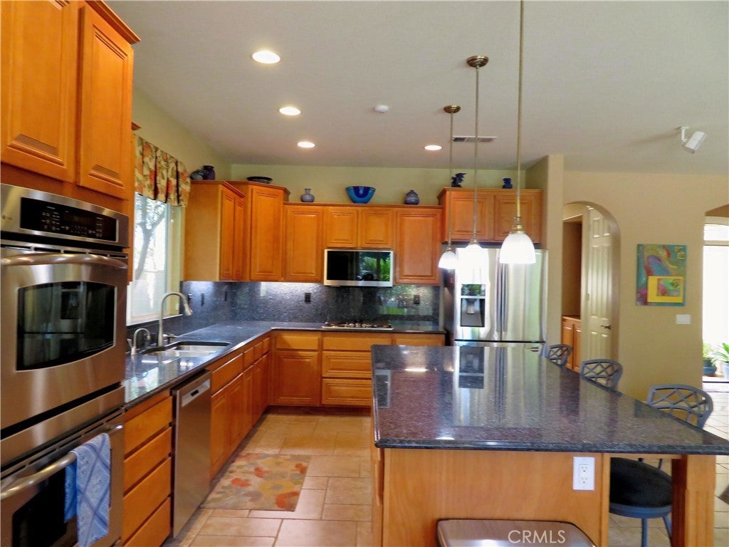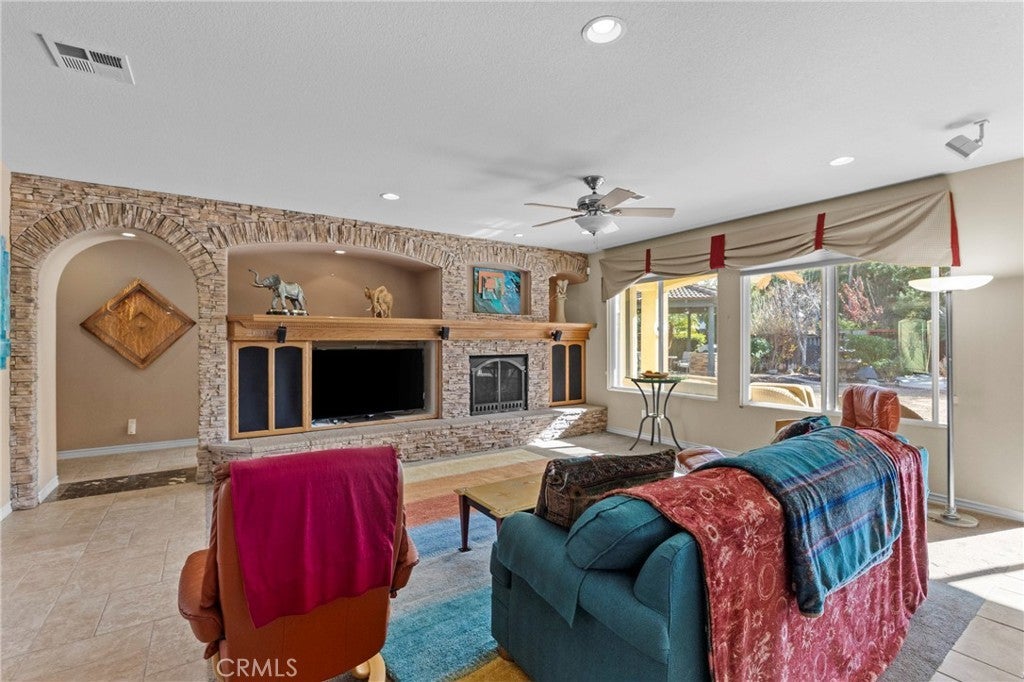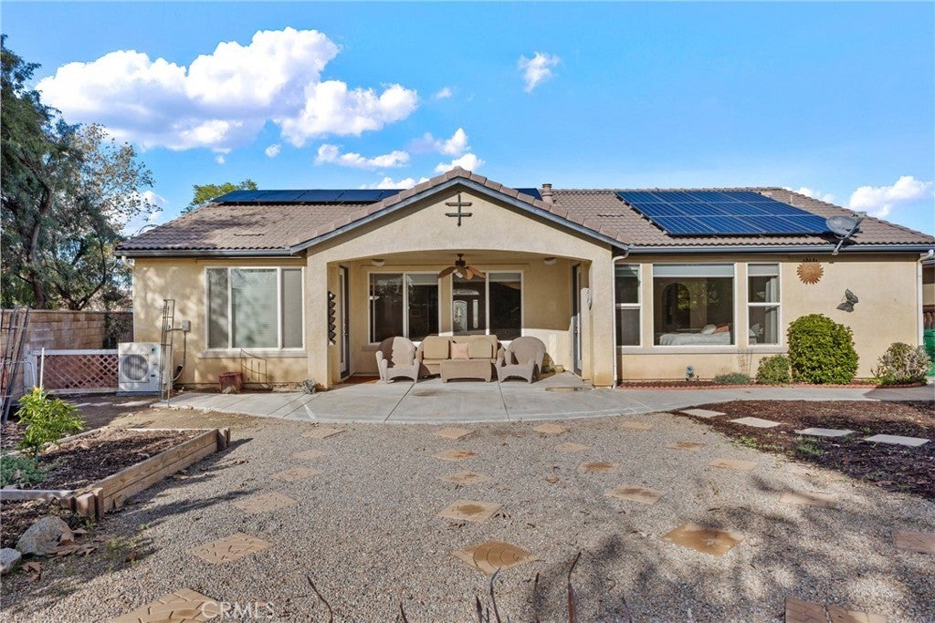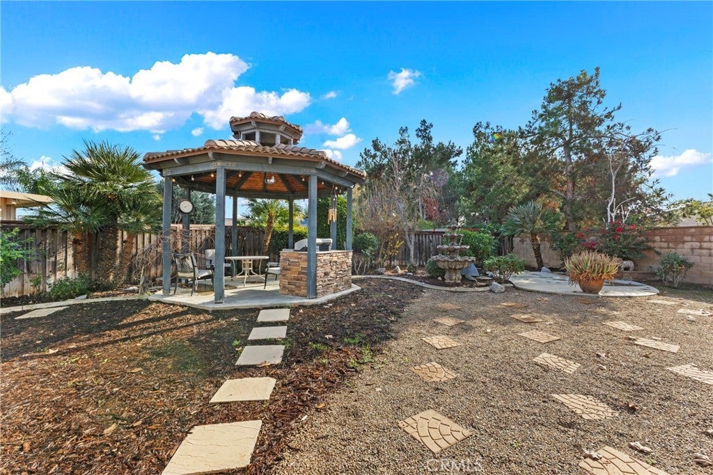 Welcome to this unique home at 29301 Lake Hills Drive. Menifee, CA 92585, a beautifully maintained single-story home offering comfort and style. Set on a generous 9,583-square-foot lot, 2,196-square-foot of living space and was built in 2005.This home features three spacious bedrooms plus a bonus room that can serve as a fourth bedroom or home gym. The open floor plan boasts high ceilings, recessed lighting, large windows, and a charming center courtyard that fills the home with natural light. The kitchen is a chef’s dream with a granite center island, upgraded stainless steel appliances including a double oven, microwave, refrigerator, and a walk-in pantry. The open family room includes a cozy fireplace and expansive views of the backyard through large windows. The home also features a low-maintenance front yard, offering curb appeal without the hassle. This home offers a private retreat, perfectly blending comfort with nature. Situated next to a scenic pathway, you can enjoy peaceful walks just steps from your door and walking distance to the serene lake. The spacious master bedroom is a true sanctuary, featuring a large walk-in closet, a separate jetted soaking tub, and a luxurious glass-enclosed steam shower. Two additional bedrooms offer ample natural light with large windows overlooking the street. The home also includes an inside laundry room, a three-car garage with a water softener system and paid solar panels. The essential appliances like the refrigerator, stove, microwave, washer, and dryer—all staying with the home for your convenience. Step outside to an entertainer’s dream backyard featuring a covered California room-style patio, a big water fountain, a cozy gazebo, and a stone-built barbecue perfect for gatherings. The yard offers fruit trees, grapevines, wooden garden boxes, and a low-maintenance full sprinkler and drip irrigation system. This home has home surge protection, fireguard protection breakers to protect the home circuits, heating and air conditioning is provided by 5-ton heat pump. Expanded solar capacity to include additional panels and 2 Tesla batteries. Limit of 5% yearly growth of energy bills starting under $200/month. Beyond this property, enjoy the resort-style amenities of this beautiful Heritage Lake Community, including 25 acres of lake with paddle boats and catch-and-release fishing, two junior Olympic swimming pools, a clubhouse, and waterfront walking, jogging, and parks.