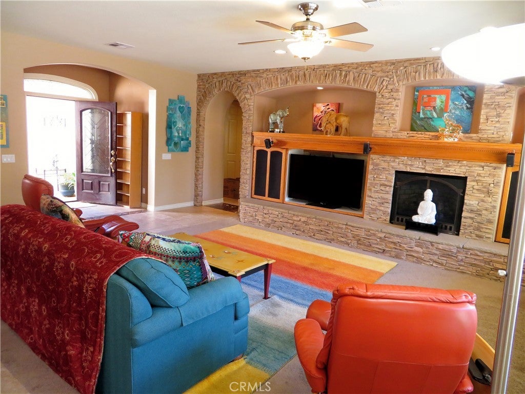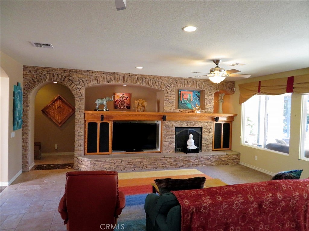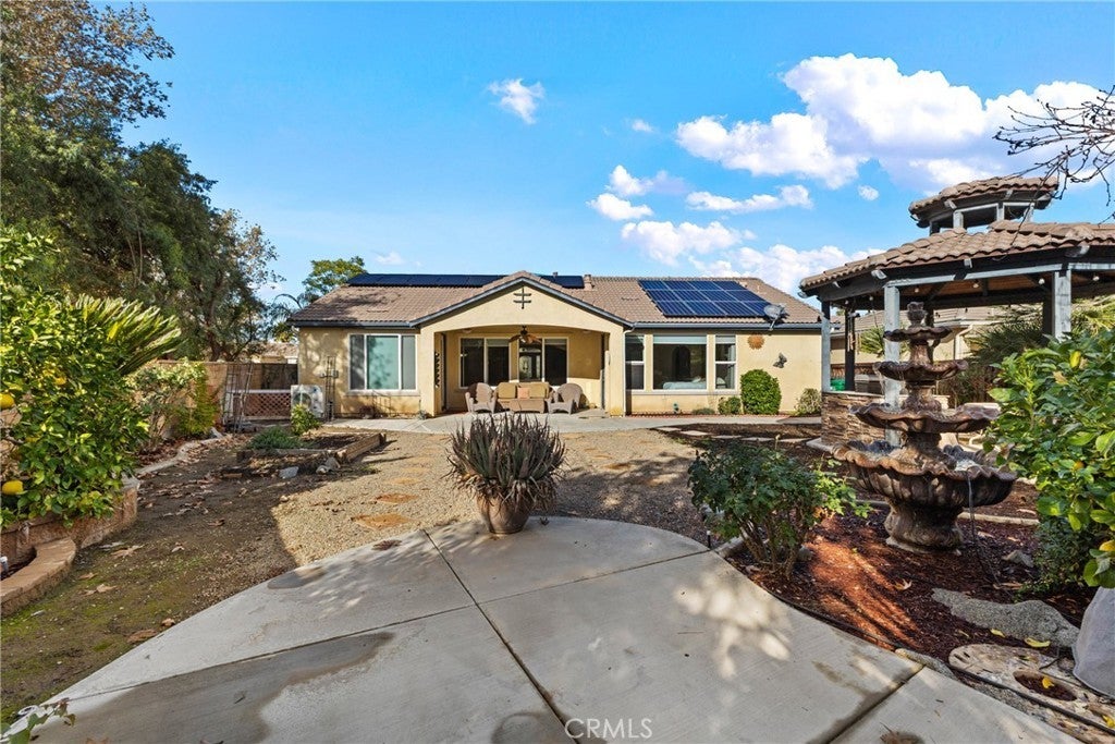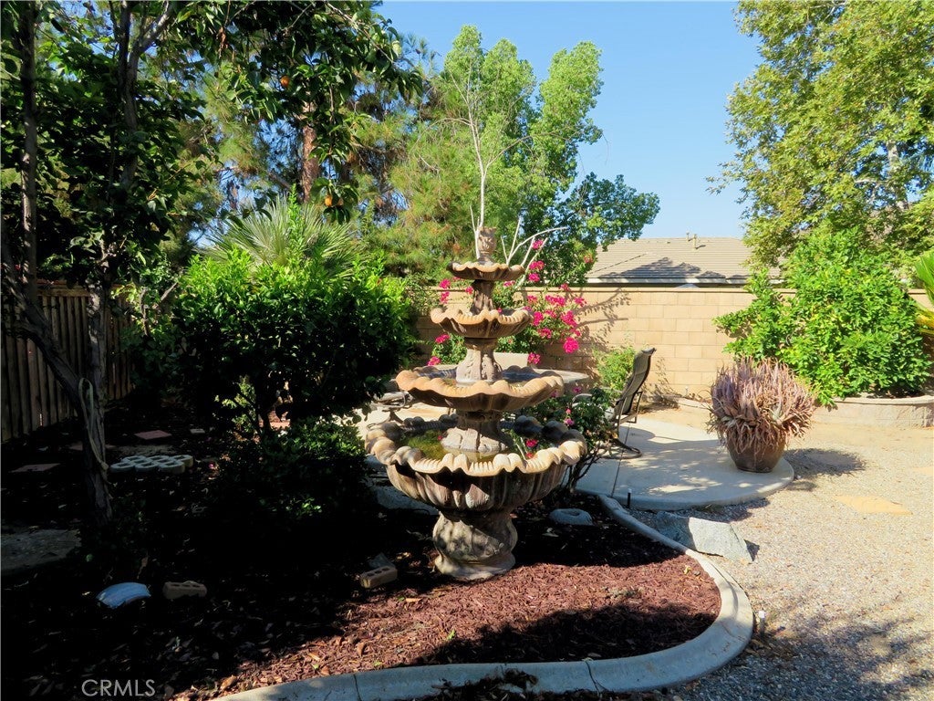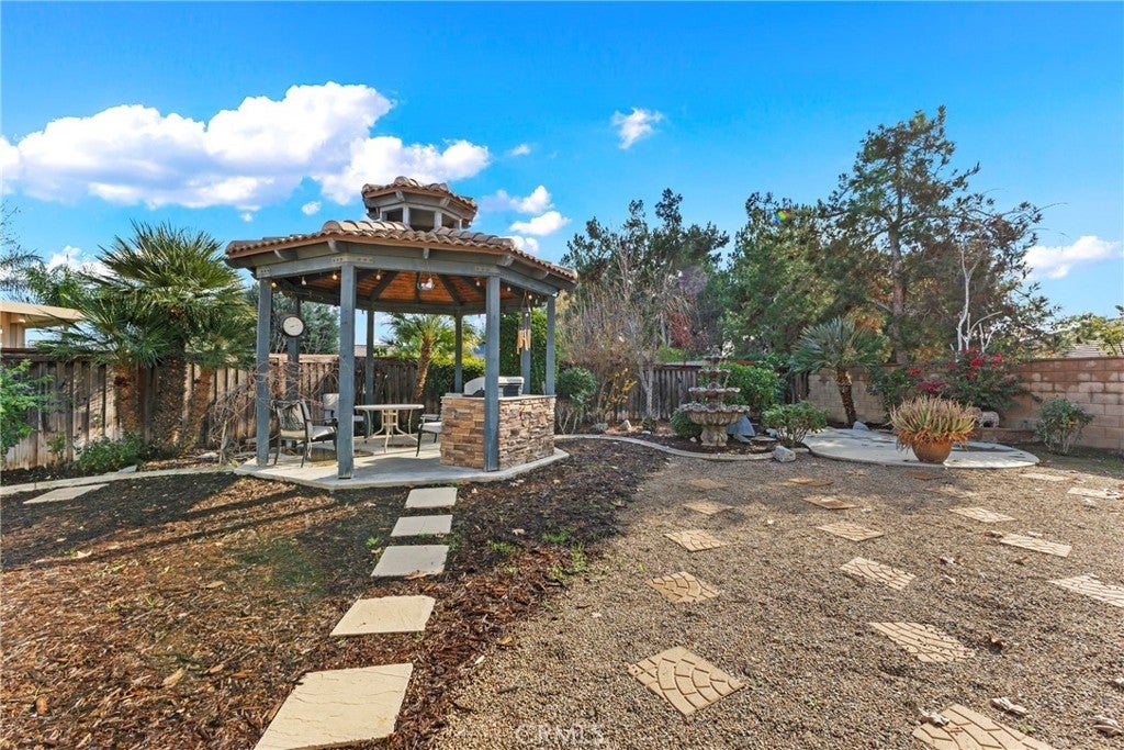 Welcome to this unique home at 29301 Lake Hills Drive. Menifee, CA 92585, a beautifully maintained single-story home offering comfort and style. Set on a generous 9,583-square-foot lot, 2,196-square-foot of living space and was built in 2005.This home features three spacious bedrooms plus a bonus room that can serve as a fourth bedroom or home gym. The open floor plan boasts high ceilings, recessed lighting, large windows, and a charming center courtyard that fills the home with natural light. The kitchen is a chef’s dream with a granite center island, upgraded stainless steel appliances including a double oven, microwave, refrigerator, and a walk-in pantry. The open family room includes a cozy fireplace and expansive views of the backyard through large windows. The home also features a low-maintenance front yard, offering curb appeal without the hassle. This home offers a private retreat, perfectly blending comfort with nature. Situated next to a scenic pathway, you can enjoy peaceful walks just steps from your door and walking distance to the serene lake. The spacious master bedroom is a true sanctuary, featuring a large walk-in closet, a separate jetted soaking tub, and a luxurious glass-enclosed steam shower. Two additional bedrooms offer ample natural light with large windows overlooking the street. The home also includes an inside laundry room, a three-car garage with a water softener system and paid solar panels. The essential appliances like the refrigerator, stove, microwave, washer, and dryer—all staying with the home for your convenience. Step outside to an entertainer’s dream backyard featuring a covered California room-style patio, a big water fountain, a cozy gazebo, and a stone-built barbecue perfect for gatherings. The yard offers fruit trees, grapevines, wooden garden boxes, and a low-maintenance full sprinkler and drip irrigation system. This home has home surge protection, fireguard protection breakers to protect the home circuits, heating and air conditioning is provided by 5-ton heat pump. Expanded solar capacity to include additional panels and 2 Tesla batteries. Limit of 5% yearly growth of energy bills starting under $200/month. Beyond this property, enjoy the resort-style amenities of this beautiful Heritage Lake Community, including 25 acres of lake with paddle boats and catch-and-release fishing, two junior Olympic swimming pools, a clubhouse, and waterfront walking, jogging, and parks.