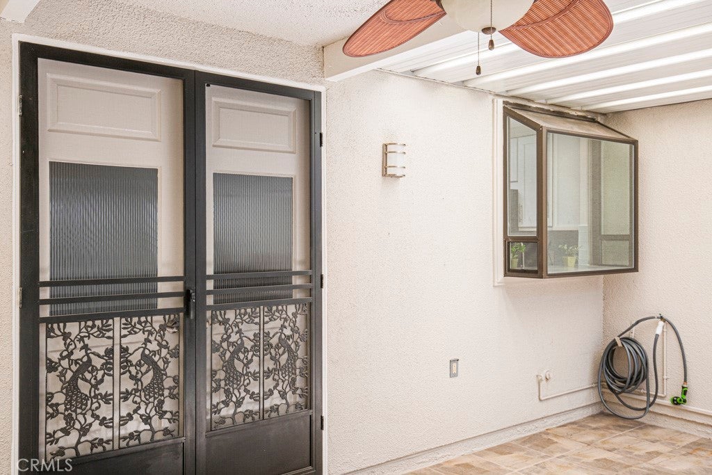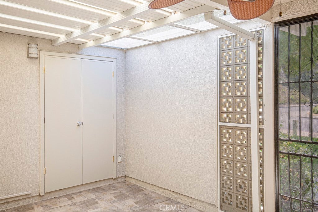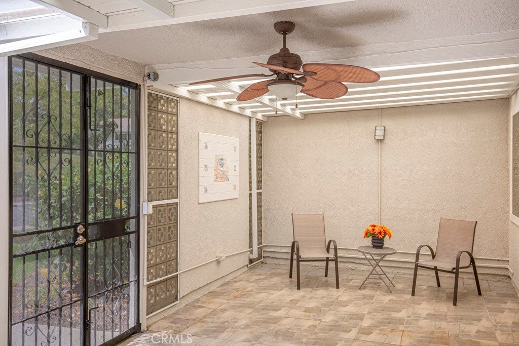 Exquisitely Upgraded Home with Enclosed Atrium and Spacious Patio! Welcome to this tastefully upgraded home where style meets functionality - COVETED CORDOBA MODEL - The beautifully remodeled kitchen features Samsung stainless appliances, including a glass-top range, oven, and microwave, rich slab granite countertops, custom cabinetry with two carousels and a garden window overlooking the covered patio. The enclosed atrium adds valuable living space with articulating skylights for abundant natural light. It opens seamlessly to the spacious living room and connects to the primary bedroom through a pocket door. The dining room boasts a skylight and mirrored doors revealing a large storage closet. The guest bathroom offers a high vanity with slab granite, an undermount sink, and a step-in shower with bench and shower wand. A convenient washer/dryer is nearby for easy access. The guest bedroom features a sliding door to the carport, ceiling fan, blinds for privacy, and a triple floor-to-ceiling closet for extra storage. The home’s double wrought-iron gate opens to a spacious covered patio with daylight panels, ceiling fan, and double screen doors. This inviting space is perfect for outdoor dining or lounging and includes a handy storage closet for garden tools, luggage, and more. Lush greenery and thoughtful upgrades make this home move-in ready and truly special. Ownership affords you the use of all the amenities that make Laguna Woods Village one of the most sought-after senior communities. Enjoy 5 swimming pools, 7 clubhouses, 3 gyms, craft studios, 2 gorgeous golf courses (27 hole & 9-hole par 3), over 250 social clubs, performing arts theater, tennis courts, equestrian trails, stable, fare free bus service, golf cart paths, manned security gates, lawn bowling, bocce ball, pickle ball & much more.