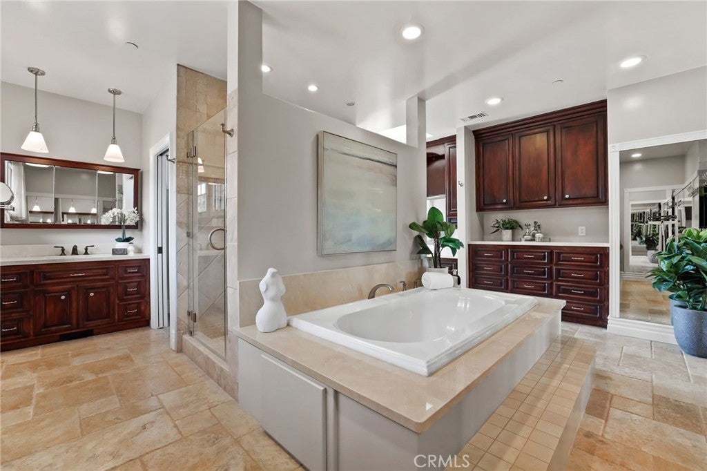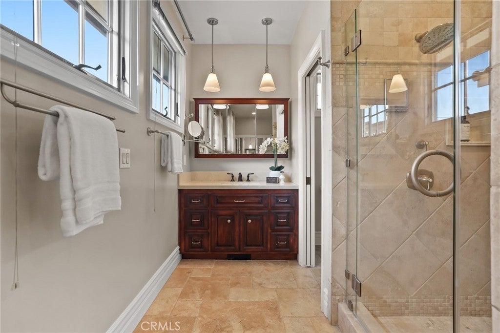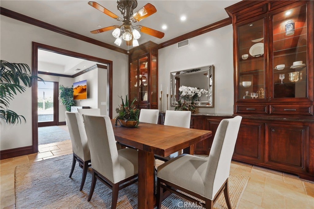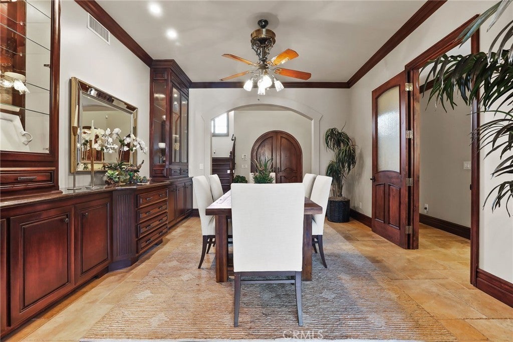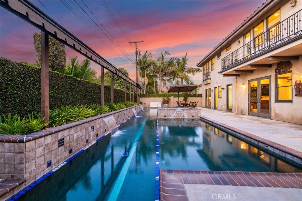 Mediterranean Craftsmanship and Modern Comfort with 60 foot lap lane pool. This one-of-a-kind custom Rossmoor estate offers exceptional construction quality, thoughtful design, and a lifestyle highly sought after in the neighborhood. With approximately 5000 sqft of usable space including 4,247 sq. ft. of living space plus a hidden finished attic space over the 766 sq. ft. garage. This home delivers flexibility, privacy, and functional luxury. The layout includes 4 large ensuite bedrooms, a ground-level guest suite with steam shower, and an impressive office/library with vaulted ceilings and natural light—complete with a concealed bonus room ideal for a gym, studio, or storage. An elevator connects each level of the home for easy travel up and down. The chef’s kitchen, built with premium cherry cabinetry, granite counters, dual refrigerator/freezers, double convection ovens, steam oven, and a generous island with prep sink. The adjacent living area includes a wet bar and converts into a home theater with a 100-inch screen for effortless entertaining. The primary suite features a spa-style bath, triple-head shower, jetted tub, dual dressing areas, and a private balcony. Additional features include solid wood doors and moldings, high-quality windows, and refined finishes throughout. Outside, the 60-foot saltwater lap pool, oversized spa, and resort-style yard create a true retreat. A 3-car garage plus additional storage area completes this exceptional property. A rare opportunity for the buyer who values craftsmanship, privacy, and a highly functional luxury home in Rossmoor.