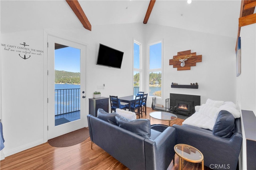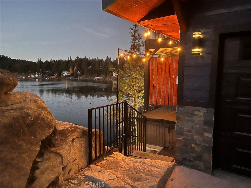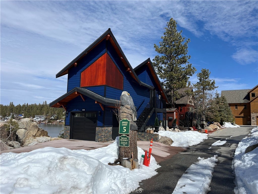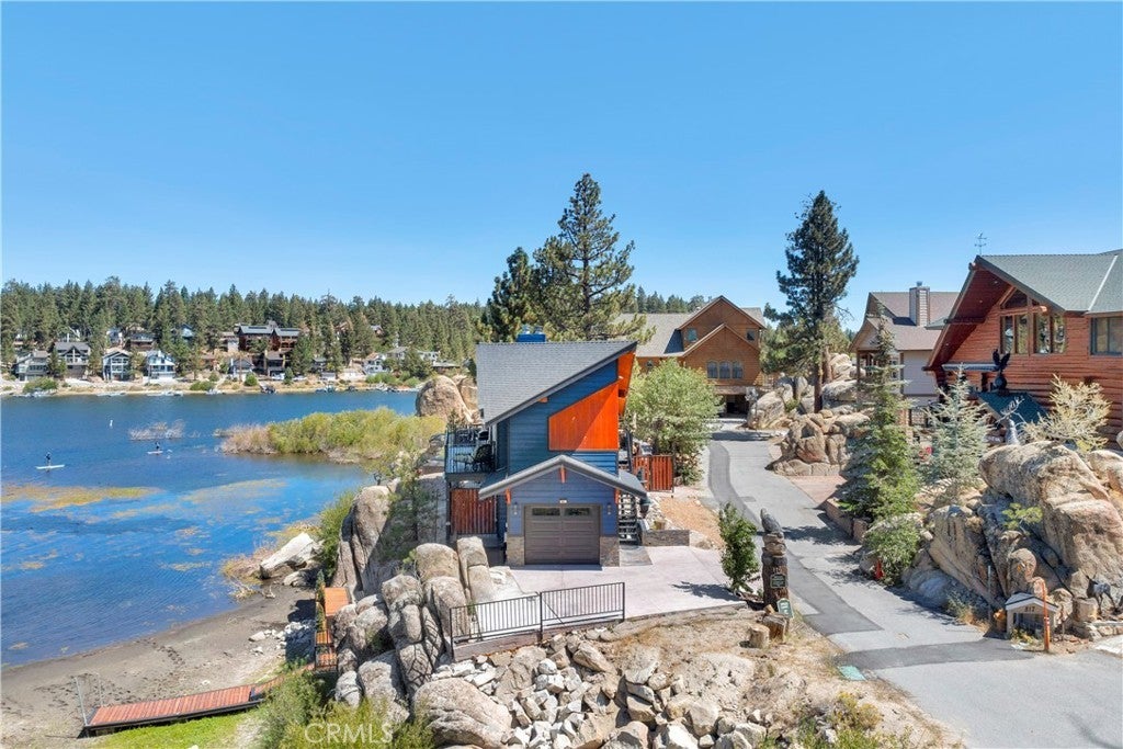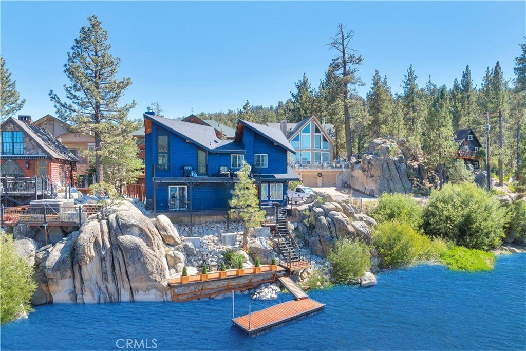 "2024" Multi-Level, Lakefront Chalet With Your Own Private Dock! Perfect Location on Boulder Bay With Expansive Sunset Views of the Lake and Forest Beyond! Wrap-Around Balcony to Enjoy The Fresh Air With Your Favorite View and Beverage! Gourmet Kitchen Fully Equipped for the Culinary Enthusiast Requiring A View! Nice Open Concept Living and Dining Rooms With A Cozy Wood-Burning Fireplace! Convenient Inside Laundry! Beautiful Cozy Bedrooms With More Million Dollar Views! Boasts a 1 Car Garage With an Electric Car Outlet, Overhead Storage and Direct Access! Remote Heated Driveway and Heated Guest Parking Spot! Dockside Sand Beach Patio With A Fire Pit, Perfect for Relaxation, S'mores, and Sunset Views After A Day On The Water! One Level Up and You Can Slip Into Your Lakeview Hot Tub! Central Air, Gas Heat And Water Conditioner! 1st Floor Bedroom, Bath, Living Room and Kitchenette With More Fabulous Views! (Could be used separately). Heavily Booked Short-Term Rental When The Owners Aren't Using or Improving! Big Bear Lake offers diverse attractions including winter sports at ski resorts, year-round family fun at the Alpine Slide and Magic Mountain Recreation Area, water activities like fishing and boating on the lake, hiking scenic trails, visiting the Big Bear Alpine Zoo, and exploring The Village at Big Bear Lake for shopping and dining.
