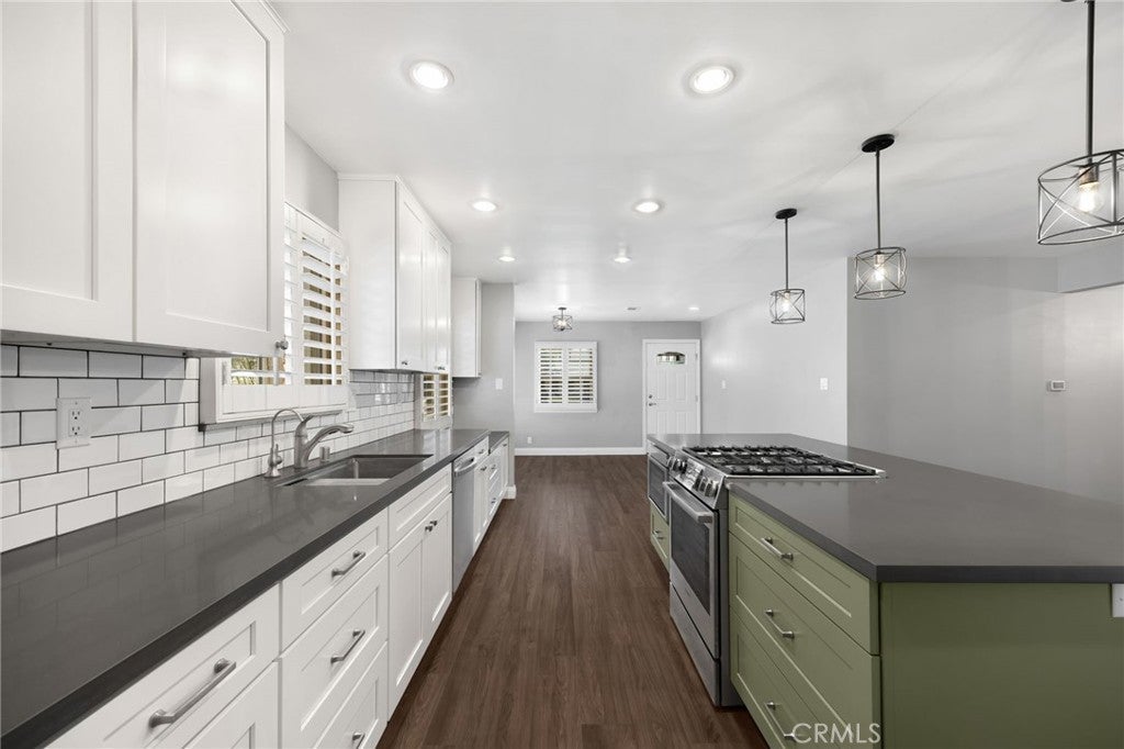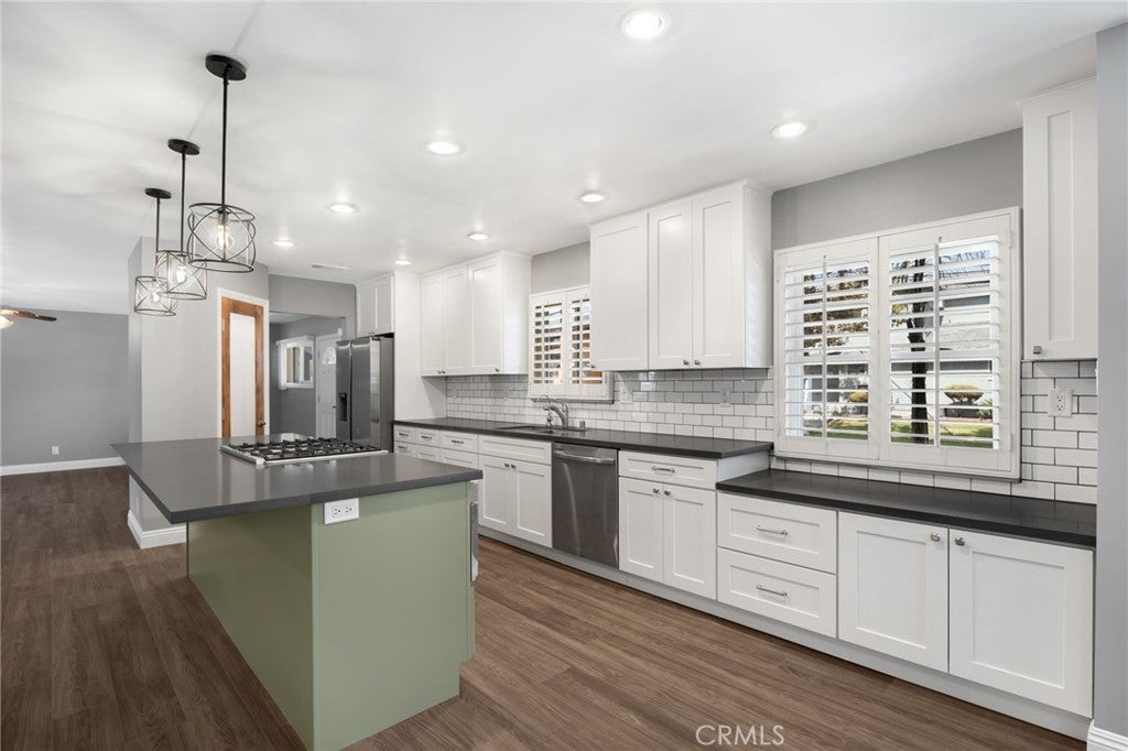 Welcome to your dream home in the desirable Lakewood Park community! This beautifully updated residence has been freshly painted inside and out, offering a bright and inviting atmosphere from the moment you step in. The home features a thoughtfully remodeled open-concept design, complete with brand new hardwood laminate flooring and stylish new light fixtures throughout. The chef’s kitchen is truly the heart of this home, boasting sleek new white cabinetry, a walk-in pantry with custom shelving, a large center island with stunning quartz countertops, and stainless-steel appliances — including a brand-new five-burner stovetop, oven, and a built-in microwave set into the cabinetry. All appliances are brand new and included, even the washer and dryer. Perfect for entertaining, the kitchen flows seamlessly into the spacious living and dining areas, highlighted by a cozy fireplace. The primary bedroom offers a generously sized closet, while the updated plumbing, brand-new water heater, and new solar-ready 200-amp electrical panel provide peace of mind for years to come. Step outside to the backyard retreat, featuring a custom deck with built-in BBQ and fridge, plus a retractable patio cover that makes family hangouts enjoyable in any weather. Additional highlights include the convenience of possible parking on both sides of the home. Perfectly located near parks, schools, shopping, and dining, this home offers both comfort and convenience. Don’t miss your chance to make this Lakewood gem your own. Schedule a private tour today!