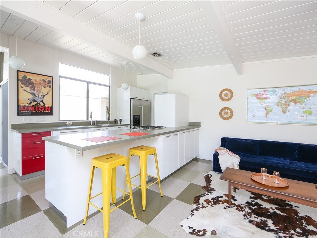 - Interior FeaturesBreakfast Bar, Separate/Formal Dining Room, Eat-in Kitchen, High Ceilings, Open Floorplan, All Bedrooms Down, Primary Suite, Atrium, Beamed Ceilings, Bedroom on Main Level, Block Walls, Built-in Features, French Door(s)/Atrium Door(s), Galley Kitchen, Track Lighting, Walk-In Closet(s), Wood Product Walls