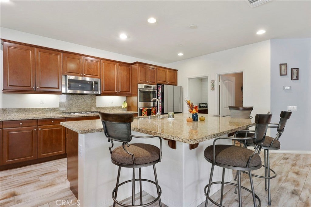 Welcome to Your Dream Home in the Sought-After College Park Community This spacious and thoughtfully designed 5-bedroom, 3-bathroom home offers 2,785 square feet of comfortable living in one of the most desirable neighborhoods in town. Located in the master-planned community of College Park, residents enjoy access to a private, resort-style recreation center featuring a fitness facility, swimming pool, BBQ areas, picnic spaces, and a fireplace lounge. Inside, the home features an open floor plan with elegant tile flooring, dual-pane windows, and energy-efficient amenities including a tankless water heater and solar system. The chef’s kitchen is equipped with granite countertops, stainless steel appliances, a walk-in pantry, and an oversized island with breakfast bar seating—perfect for both daily living and entertaining. A rare added bonus is the secondary kitchen, complete with its own range, indoor grill, sink, and refrigerator—ideal for special occasions or large family gatherings. Additional highlights include a spacious laundry room with storage space, a loft area perfect for a media room or office, and an organized garage with built-in cabinetry and rain gutters. Upstairs, the expansive primary suite features a walk-in closet and a well-appointed ensuite bathroom with separate soaking tub and shower. Enjoy the balance of modern upgrades and community charm in a home designed for comfort, function, and everyday enjoyment. Conveniently located near schools, parks, shopping centers, and commuter routes. This is the lifestyle you’ve been looking for—schedule a tour today.