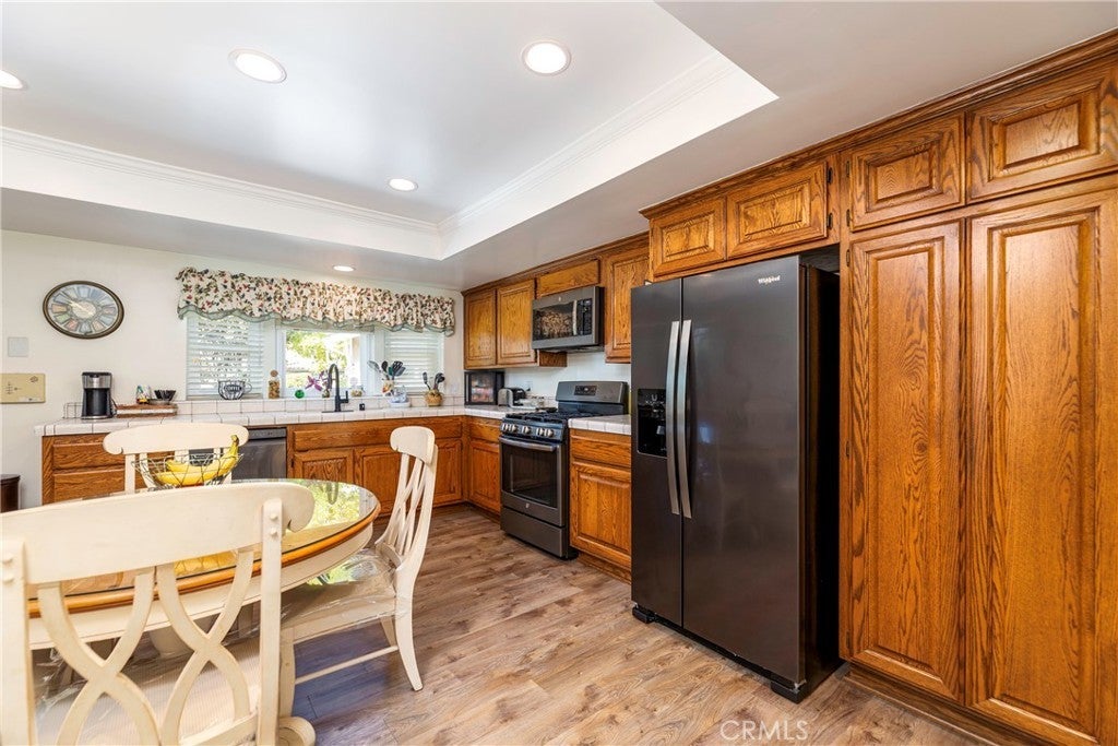 Wow! One Of The Most Beautiful Homes In La Mirada! Past Beautification Award Winner! Great Curb Appeal! Located In The Pride Of Ownership Biola Area! Enter Into The Large Living Room & Dining Area , Complete With Beautiful High Opened Beamed Ceilings , Luxurious Earth Tone Vinyl Flooring! Cozy Fireplace! And Upgraded Dual Pane Windows And Slider , With Custom Shutters And Window Coverings! Adjacent Is A Beautiful Extra Large Kitchen Complete With Plenty Of Beautiful Wood Cabinets & Counter Space! Large Custom Dual Pane Garden Window Overlooking The Beautiful Front Yard! Custom Recessed Lighting! And Luxurious Vinyl Flooring! The Primary Bedroom Is Very Nice & Large With A Very Nice Modification To the Large Primary Bathroom Complete With A Large Closet Area! The Guest Bathroom Is Complete With Tub & Shower! One Of The Other Bedrooms Has Been Beautifully Expanded With 2 Separate Mirrored Wardrobed Closets! The Backyard Is Absolutely Park Like Beautiful With Mature Fruit Trees And An Extra Large Custom Aluminum Patio! High Fencing For Complete Privacy! Upgrades Include... Rain Gutters , Painted Outdoor Trim , 30 Year Roof With 1.5 Inch Insulation (2019). Water Softener , Newer Front & Side Doors , Electrical Panel , Main Water Line (2024). Garage Door & Opener , Water Heater And Copper Plumbing! Your Clients Will Absolutely Love This Home!