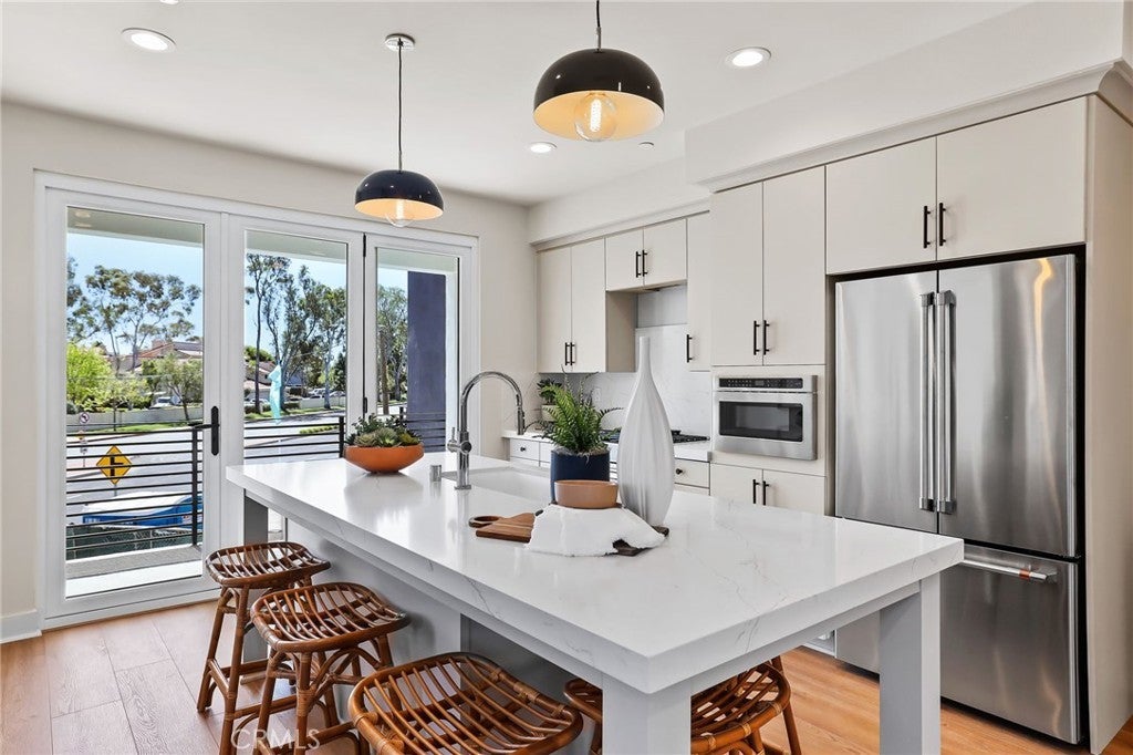 TURNKEY, UPGRADED, PROFESSIONAL INTERIOR DESIGNED, FURNISHED MODEL HOME FOR SALE - ONE OF THE LARGEST PRIVATE PATIOS WITHIN THE COMMUNITY, OVERLOOKING THE FUTURE GREENBELT/PARK AREA! Just a quick cruise down Main Street and you're where you want to be - HB's newest community built by a multi-generational local family builder. This plan 2 features and entry level office/studio space right off the two bay garage. Upstairs you'll love the great room design with the large island and private deck. Plus two spacious bedrooms, each with its own en-suite bathroom, and a convenient top-floor laundry. Plus, with built in solar, this home combines energy efficiency with contemporary design. Buyers will have the opportunity to customize their home at the Design Center after purchase. Experience the perfect blend of style, functionality and eco-friendly living all in the legendary Surf City, USA. Huntington Beach offers excellent schools plus low taxes and No Mello Roos! These stunning SOLAR POWERED brand-new townhomes are designed around your busy, lock & leave -get to the beach- lifestyle. Pictures are of Actual (Model) Home
