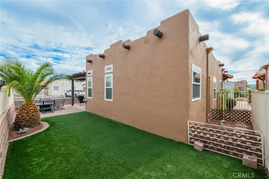 Welcome to this stunning single-story home nestled in the highly sought-after Rio Buena Vista community in Needles, offering the perfect blend of luxury, convenience, and desert adventure. This is an unparalleled opportunity to own a property that truly embraces the Southern California outdoor lifestyle, with steps leading right to the Colorado River. Location and Community Perks: This home is a dream for outdoor enthusiasts. You're mere steps from the Colorado River, making it ideal for summer water sports like boating, jet-skiing, and fishing. For the off-road enthusiasts, the surrounding desert provides endless trails to explore. Golfers will love the easy walking distance to Rivers Edge Golf Course and the popular 19th Hole Bar and Grill. The Rio Buena Vista community provides a wealth of amenities, including a refreshing pool, a relaxing spa, and courts for volleyball and basketball, ensuring there's always something fun to do close to home. Upgraded and Turnkey Ready: Step inside to find a beautifully maintained and upgraded residence. The interior features upgraded laminate floors, elegant plantation shutters, and a fresh look with newer paint on the interior and exterior. Enjoy peace of mind and energy efficiency with new Milgard windows and a new AC unit. The home is equipped with a GE water softener and a whole home Ring alarm system for added security and comfort. The Ultimate Outdoor and Storage Oasis: The property is built for living the desert and river life to the fullest. A standout feature is the large $12' x 40' boat garage, providing secure, oversized storage for all your river toys and vehicles. The backyard is an entertainer’s paradise, boasting a finished rear yard complete with a patio cover, lush turf, and fun tiki torches. There's a gas stub in the backyard ready for your gas BBQ, perfect for cookouts under the stars. The front porch features sun shades, creating a comfortable and welcoming entry. Included and Custom Features: This home is being offered turnkey with numerous inclusions, making your move-in seamless. The living room features a new leather electric reclining sofa and matching electric recliners. You'll also find the washer, dryer, three refrigerators, and a chest freezer included in the sale. The main garage features custom-built storage for optimal organization. This beautiful home offers an excellent location within the community, providing a fantastic opportunity to own a slice of paradise.