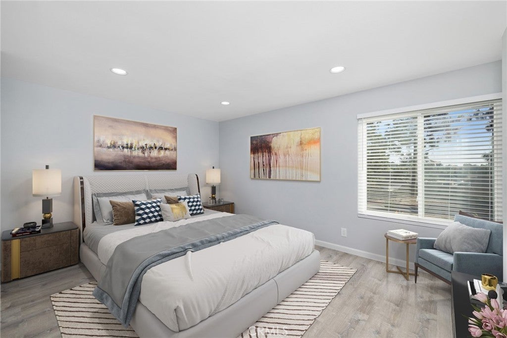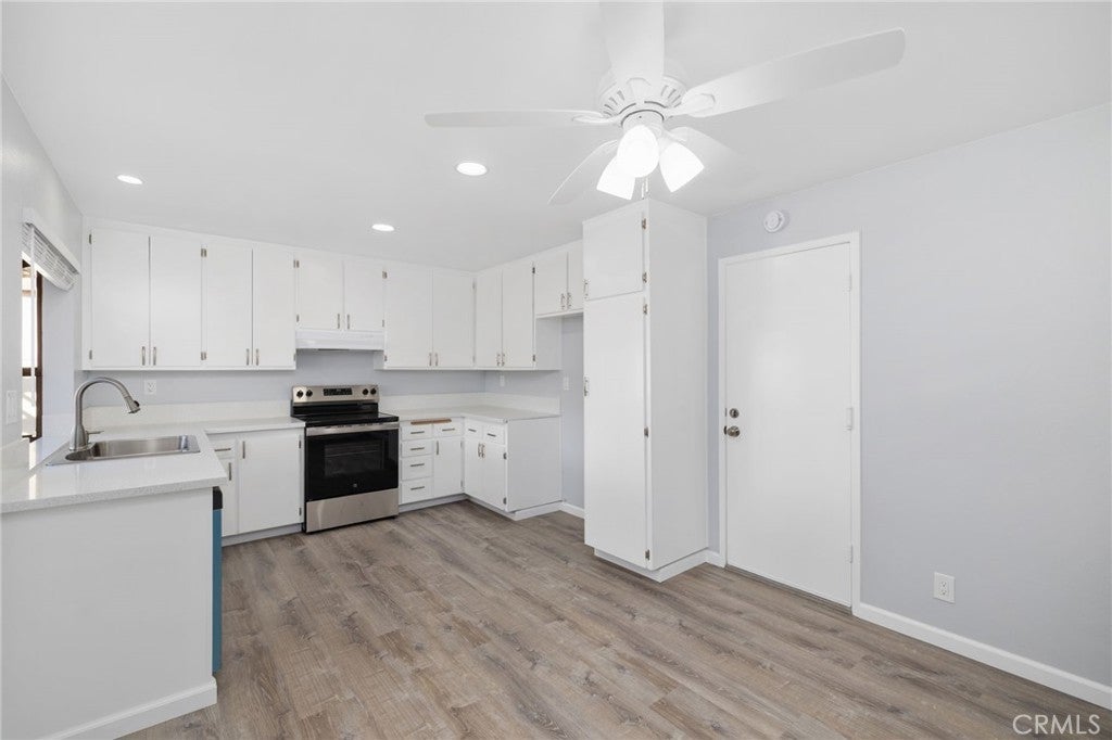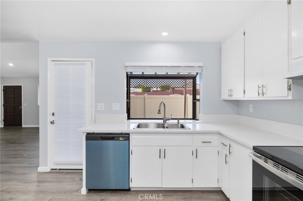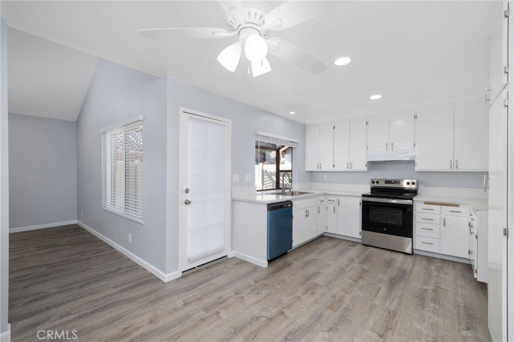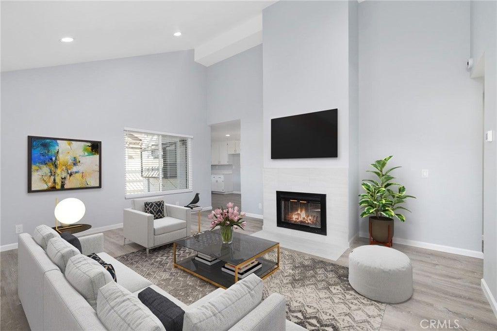 Welcome to this spacious single level 2-bedroom, 2-bathroom condo offering 1,080 sq ft and attached 2 car garage with direct access, and large private backyard. Step inside to discover a grand eat-in kitchen with stunning cabinetry, all-new stainless-steel appliances, and canned lighting—perfect for entertaining or everyday comfort. The spacious layout features vaulted ceiling, vinyl flooring throughout, indoor laundry, and a freshly painted interior that feels bright and inviting. Enjoy outdoor relaxation on your private back patio or take advantage of the rare 2-car enclosed garage plus guest parking. Modern features have been added including a brand-new HVAC system, dual pane windows, and modern blinds for added comfort and privacy. Conveniently located near top shops, restaurants, and major highways, this turnkey home blends comfort, style, and accessibility. A must-see gem!