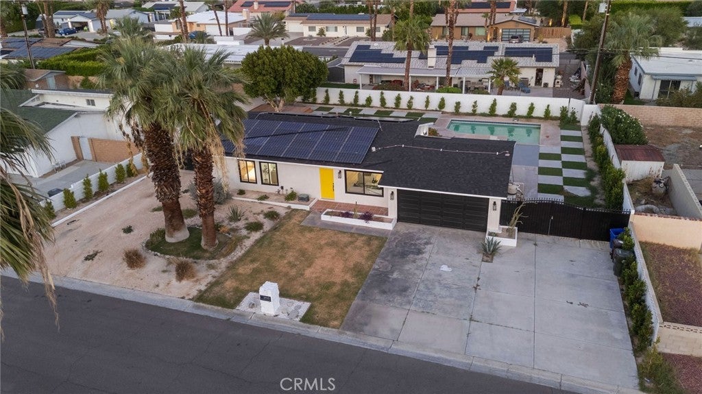 Welcome to this stunning three-bedroom, two-bath residence, ideally situated in the heart of Palm Springs’ sought-after Desert Park Estates. Enjoy breathtaking mountain views from a home that has been fully reimagined inside and out, with every detail thoughtfully upgraded. The kitchen shines with modern finishes and brand-new appliances, while both bathrooms have been stylishly remodeled. Additional upgrades include a new A/C system, water heater, windows, and recessed lighting throughout, ensuring comfort and efficiency. The open-concept layout and soaring entryway ceilings create a bright, airy, and inviting atmosphere—perfect for everyday living, a second home retreat, or a lucrative vacation rental. Step outside to a private backyard oasis, redesigned with quintessential Palm Springs flair. The outdoor space features a sparkling pool, shaded deck area beneath a mature tree, and refreshed landscaping in both the front and back yards—ideal for relaxing or entertaining. Practical touches add to the home’s appeal, including dual driveways for ample parking, central air conditioning, and energy-efficient solar panels. All just minutes—three miles north—of the vibrant shops, dining, and entertainment of Downtown Palm Springs. This turnkey property offers the perfect blend of style, comfort, and location. Don’t miss your chance to own a true Palm Springs gem!