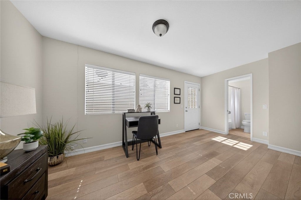Newly Renovated into 2 Bedrooms (permitted) with 2 Bathrooms! Welcome to this beautifully updated Woodbridge townhome in the most desirable Chateaux neighborhood. Features all the comforts to compliment this fantastic location. New Roof. Enjoy living here in this 2 Bedrooms, 2 bathrooms, end-unit townhome with a direct access 2 car garage! It is unique with a private courtyard, and a convenient private balcony adjacent to the newly renovated second bedroom with direct access into the bathroom. It has a living room with New Fireplace, dining area, kitchen and bathroom on the main level along with desirable direct garage access. Not all units in this tract have direct garage access, making this home even more desirable and accessible. The kitchen has stainless appliances dishwasher and Refrigerator and Stove/Oven. The spacious primary bedroom has a bathroom with dual sinks, new reglazed tub with surrounding tile. It is a quiet and mature neighborhood, with convenient access to all areas of Woodbridge. It is nearby Woodbridge High School and other Irvine award winning schools, with easy access to the 405 and to UCI, shopping and more! Enjoy all of Woodbridge's and Southlake's wonderful amenities. The Woodbridge Village Association features 41 recreational facilities including 2 landmark lakes spanned by wood footbridges, 22 pool facilities, a splash pad, 16 spas, 2 beach lagoons (with boat docks), 23 tennis courts, 4 pickleball courts, a big wheel park, an outdoor fitness course, basketball, volleyball, shuffleboard, horseshoe, bocce ball, fishing, and much more. Don't miss this.