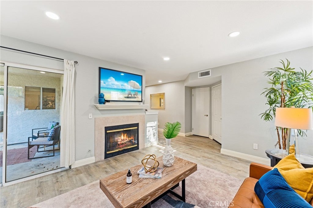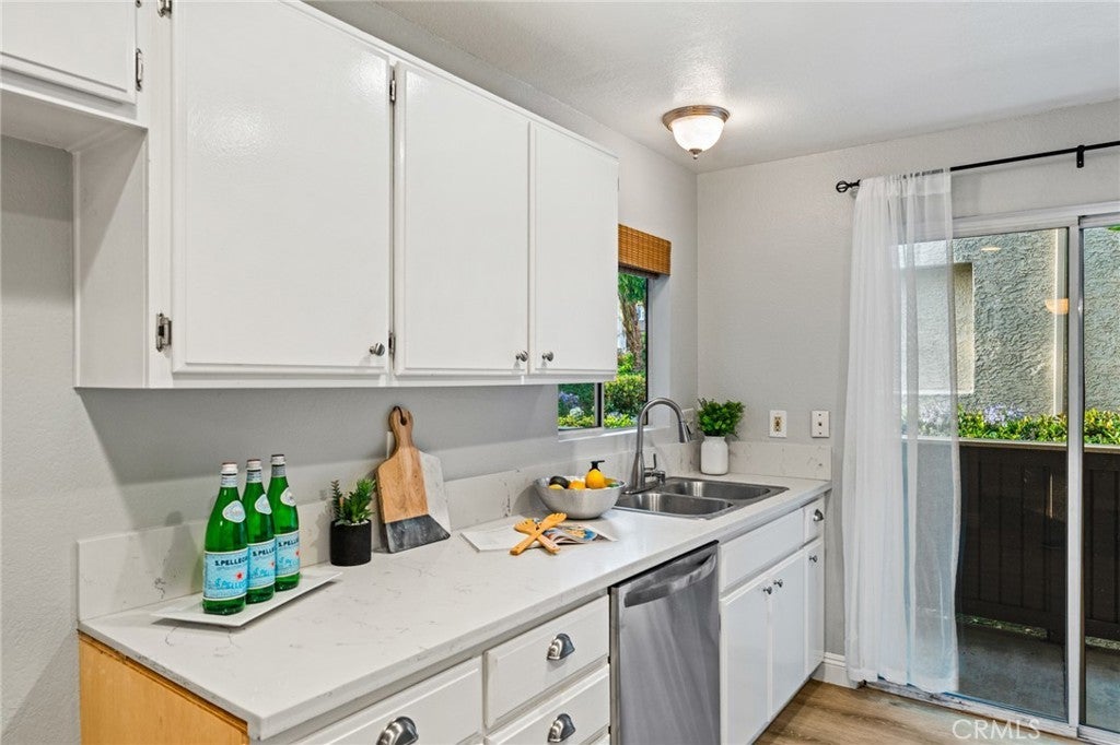 Welcome to 54 Corniche Drive, a beautifully updated ground-floor condo in the coveted, 24-hour guard-gated community of Ritz Pointe, just minutes from the sand, sea, and world-class resorts of Dana Point. This thoughtfully upgraded 2-bedroom, 2-bath home offers the ideal blend of comfort, style, and location. The open-concept living area welcomes you with a cozy fireplace and seamless access to a large, wraparound patio—perfect for morning coffee, sunset cocktails, or soaking in the ocean breeze. Just off the patio, you'll find your private laundry room, adding a layer of everyday convenience. The kitchen shines with quartz countertops, ample cabinetry, and a functional layout ideal for cooking and entertaining. Wide-plank vinyl flooring runs throughout the main living spaces, combining a modern aesthetic with easy maintenance. Both bedrooms feature brand new carpeting, oversized walk-in closets, and abundant natural light. The spacious primary suite includes a beautifully updated en-suite bath with new vanities, mirrors, and contemporary fixtures. Additional upgrades include complete home repiping in 2024 for added peace of mind. Enjoy resort-style amenities just steps away—relax at the pool and spa, stay active in the fitness center, or unwind in the clubhouse. An assigned covered carport is included for easy parking. Ideally located near Salt Creek Beach, the Ritz-Carlton, Monarch Beach Golf Links, Ocean Ranch Village, and the vibrant Lantern District, you'll have quick access to top-tier shopping, dining, hiking, and coastal adventures. Commuting is effortless with close proximity to John Wayne Airport and major freeways.