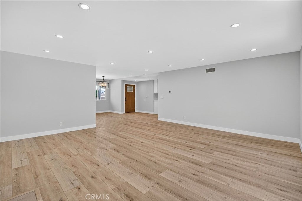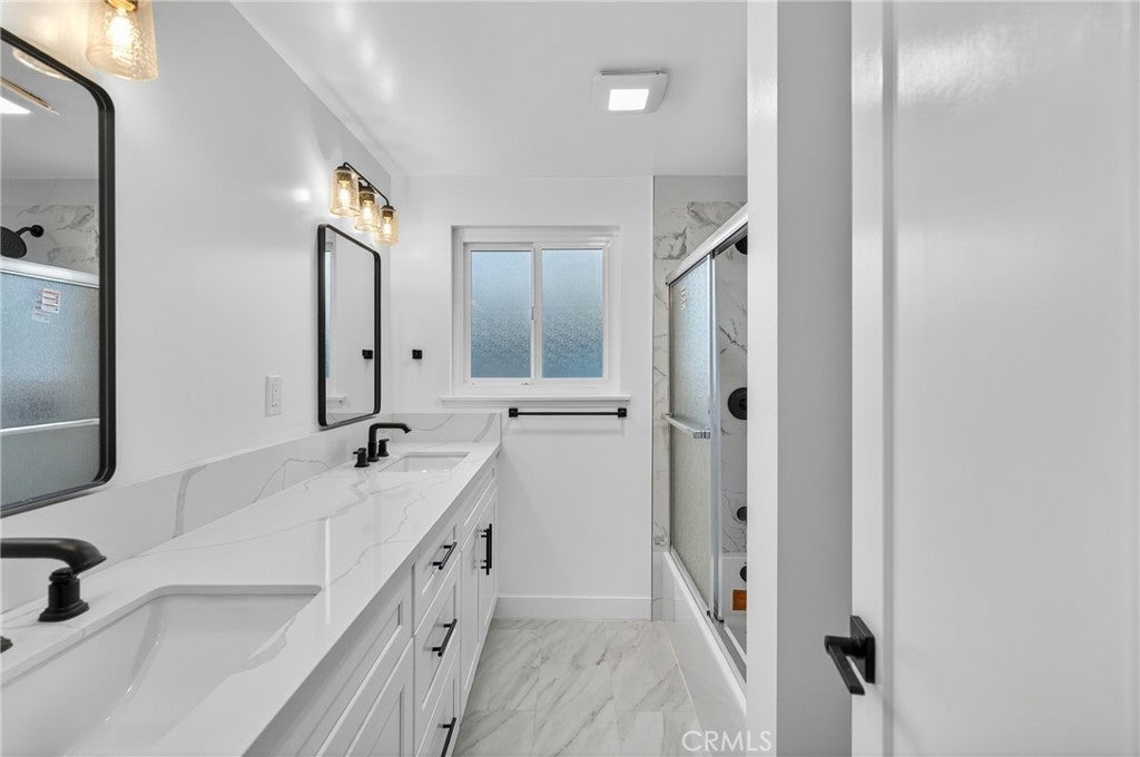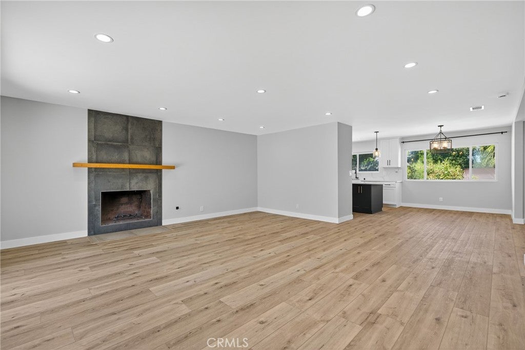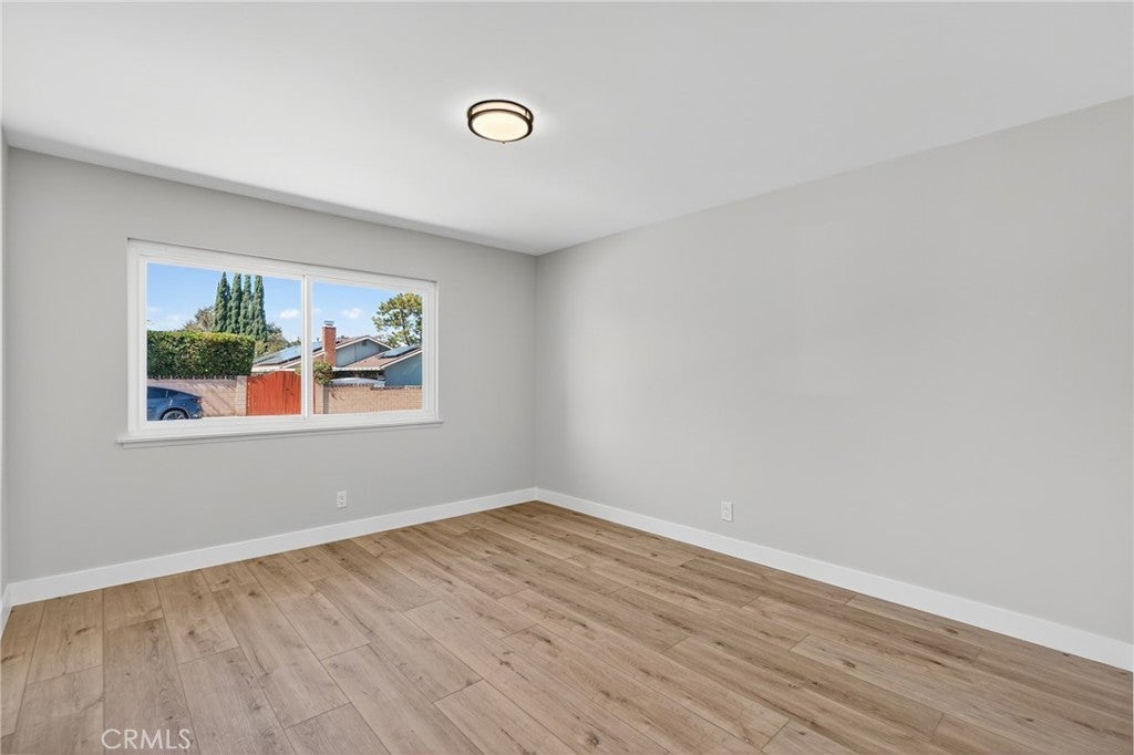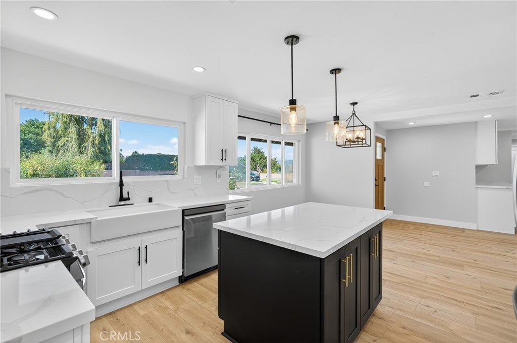 Welcome to this beautifully reimagined residence, perfectly situated on a tranquil tree lined street framed by blooming Jacaranda trees each spring. Thoughtfully renovated with a focus on quality craftsmanship and timeless design, this home offers an elevated living experience that blends modern comfort with refined sophistication. From the moment you step inside, you are greeted by smooth finished walls, elegant ceilings, and premium vinyl plank flooring that flows seamlessly throughout. Every interior door, entry door, and closet door has been replaced, creating a cohesive and polished aesthetic. A custom built hallway vanity with upper and lower cabinetry and a sleek quartz countertop provides stylish and functional storage while enhancing the home’s upscale appeal. The fully renovated bathroom serves as a serene retreat, featuring a custom vanity, designer tile work, a new soaking tub, and contemporary lighting that evokes a spa like atmosphere. The kitchen is both beautiful and functional, showcasing shaker style soft close cabinetry, quartz countertops, and an oversized island with seating, ideal for both intimate meals and large gatherings. The open floor plan extends into the bright and inviting family room, complete with a cozy fireplace and sliding glass doors that lead to the backyard, creating a seamless indoor outdoor living experience. The expansive, level backyard offers endless potential, whether you envision building an ADU, designing a resort style pool, or creating a private garden oasis. Additional highlights include a dedicated laundry room, a spacious two car garage, and a versatile backyard shed that can serve as extra storage or a creative workspace. With sophisticated updates, exceptional attention to detail, and a highly desirable location, this home stands out as a rare opportunity to enjoy elevated living in a peaceful, picturesque setting. It is a truly move in ready property that combines luxury, comfort, and future potential in one beautiful package.