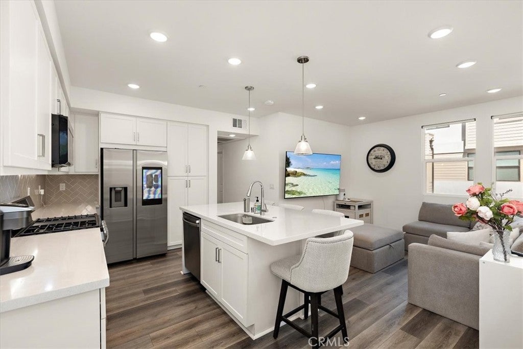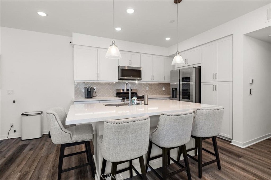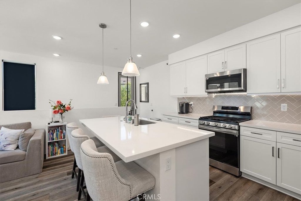 Price Improved to $510,000 Experience modern living at its finest in this impeccable 2022-built townhome, perfectly situated in The Resort of Rancho Cucamonga. This 1,002 sq ft corner unit is designed for a stylish and convenient lifestyle. Step inside from your spacious tandem garage, featuring two extra storage areas and EV charging for both standard and high-speed vehicles. Upstairs, the main living area is an entertainer's dream. The dining and living area is open and spacious enough for you to land and enjoy quality time with loved ones without feeling crowded. A large island with wrap-around counter space seamlessly connects the kitchen and living room. The kitchen boasts nearly new appliances, ample storage, and a pantry, making it truly move-in ready. From your cozy, north east-facing balcony, enjoy fresh morning air with stunning sunrise views over the San Bernardino Mountains. The primary suite offers a true sanctuary, complete with a generous walk-in closet and a private ensuite bathroom. The second bedroom is perfect for a guest room or home office, conveniently located next to the common bathroom and laundry closet. Live the resort lifestyle with exclusive access to top-tier amenities, all just a short walk away. From pools, a spa, and a gym to a yoga studio and a vibrant community center, everything you need to thrive is right outside your door.