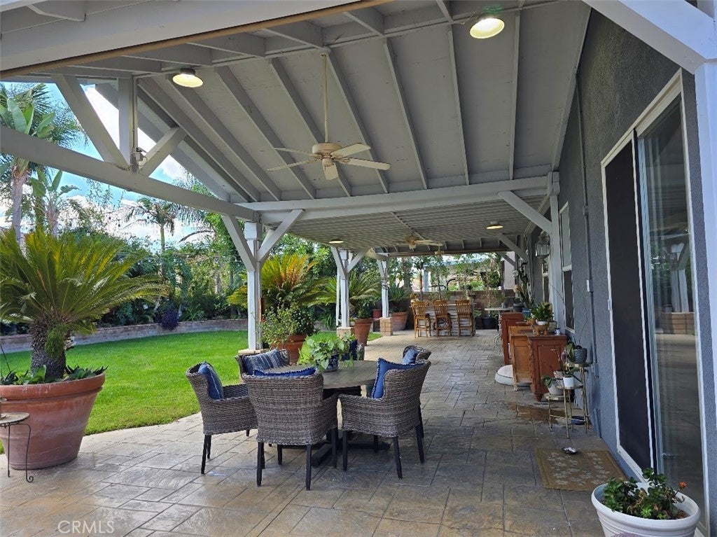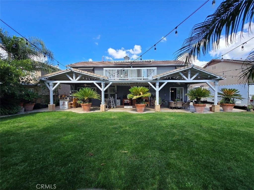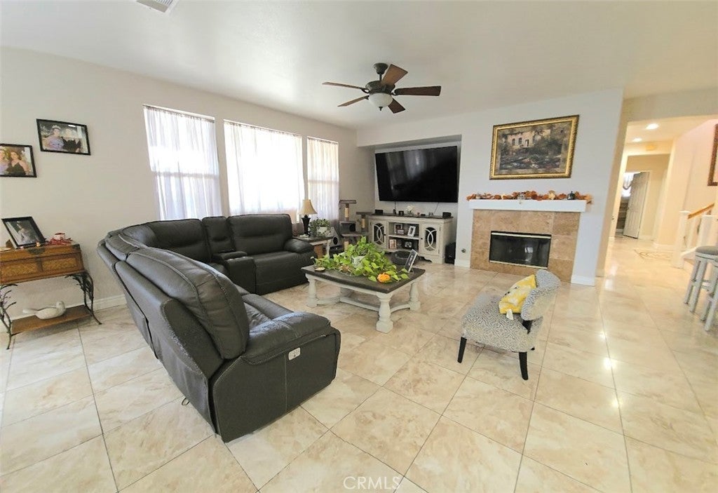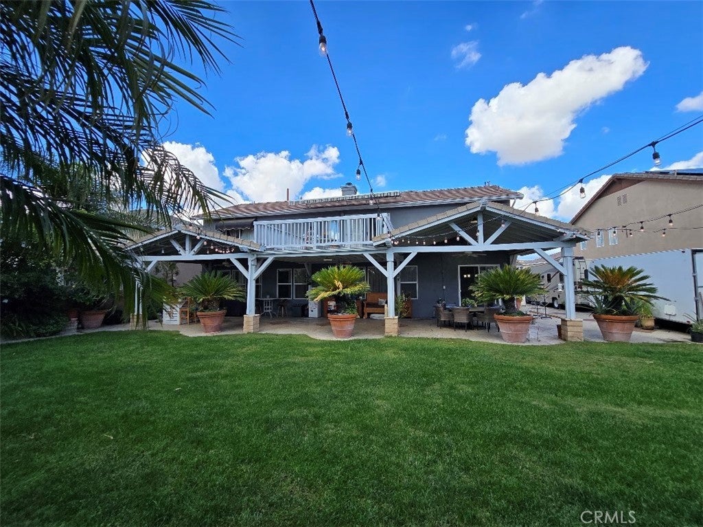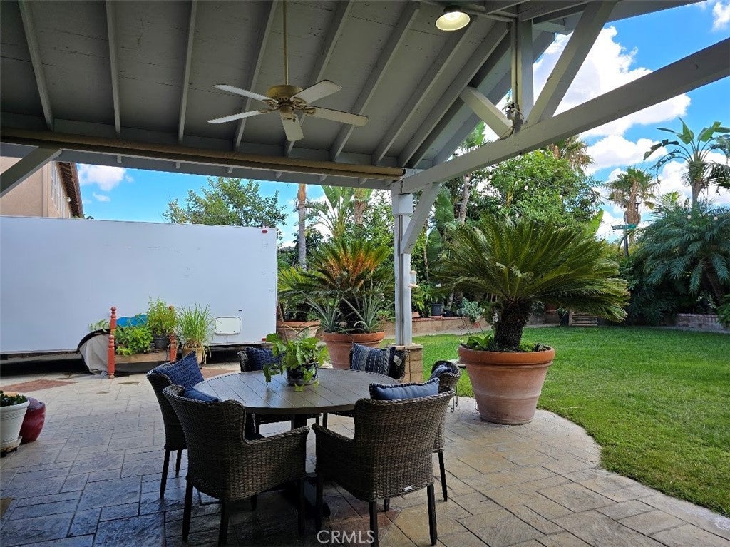Welcome to your dream home — where luxury, functionality, and fun come together in perfect harmony! This beautifully upgraded 6-bedroom, 4-bath residence offers nearly 3,604 sq. ft. of refined living space on a generous 11,065 sq. ft. lot with RV parking. Step through the double-door entry way into a grand space featuring high ceilings and an elegant formal living and dining room adorned with marble flooring throughout the first floor. The spacious kitchen has been tastefully remodeled with a white quartz island and matching backsplash featuring gold-veined accents, built-in microwave and oven, and a walk-in pantry. The laundry room is conveniently located behind the kitchen area and adds to the home’s practicality. The inviting family room features a cozy fireplace, while the wood staircase with white risers leads to the second floor, where wood flooring continues throughout. The master bedroom offers a true retreat with access to a private deck featuring a retractable awning, dual vanities, a separate shower, whirlpool jetted tub, and a generously sized walk-in closet. There are four additional bedrooms on the second floor, as well as two bathrooms with one featuring a Jack-and-Jill layout. There is an additional bedroom with a full bath, perfect for guests or multi-generational living. Designed for entertaining and everyday enjoyment, the backyard oasis boasts an expansive covered patio with two ceiling fans, three motorized custom patio shades, block planters, and fruit trees that enhance both privacy and charm. The side yard also has enough space for RV access. A four-car garage provides ample space for vehicles, storage, or even a future ADU conversion.