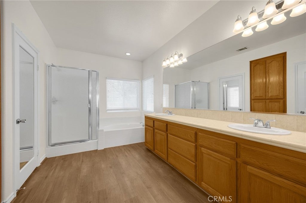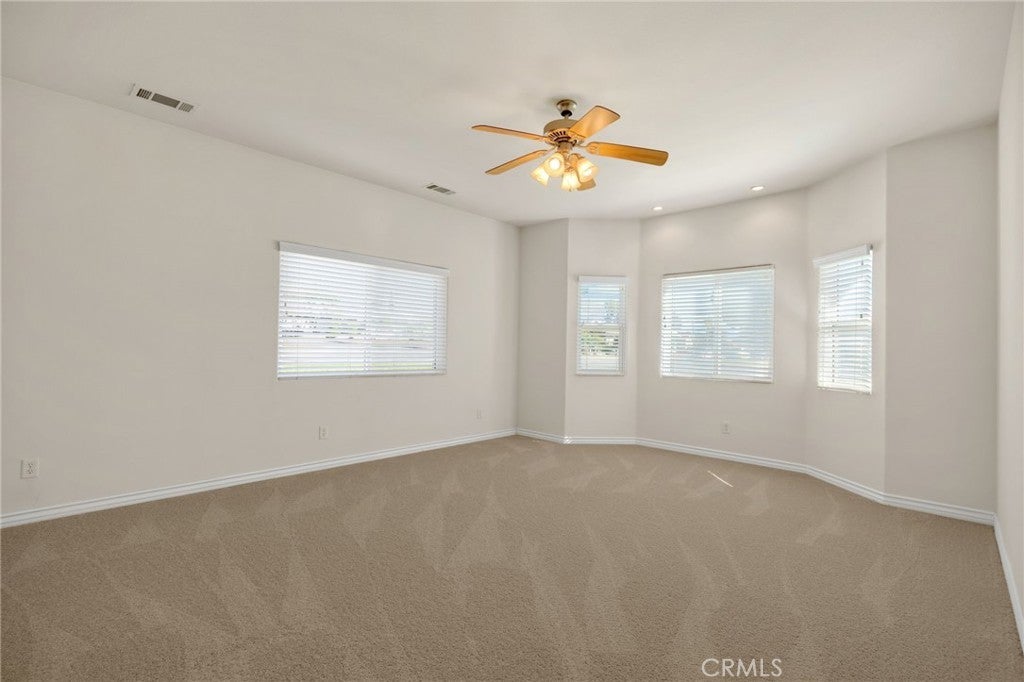 Located on a spacious corner lot in the desirable Jurupa Hills Country Club neighborhood, this Newer, beautifully maintained single-story home, built in 2003, offers the perfect blend of comfort, efficiency, and functionality. Featuring 4 bedrooms and 3 full baths—including Two Primary Suites on opposite sides of the home—it’s ideal for multi-generational living or hosting guests. Enjoy a large living room with a cozy fireplace and a formal dining room, perfect for entertaining. The kitchen boasts granite counters, a breakfast bar, and ample cabinet space. Brand New Carpet throughout enhances the home's fresh, move-in-ready appeal, while Owned Solar Panels provide long-term energy savings and increased efficiency. The main suite includes a walk-in closet, dual vanities, soaking tub, and a separate shower. Additional highlights include an inside laundry room, 3-car garage, large driveway, and RV parking.