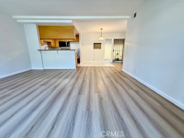 Urban Convenience Meets Natural Serenity in the Heart of Orange County. Welcome to your peaceful retreat in the city! Nestled in the highly sought-after gated community of Park Bristol, this beautifully updated ground-floor condo offers the perfect blend of tranquility and convenience. Enjoy the soothing sounds of a nearby stream—just steps from your private deck off the spacious family room. This light-filled, open-concept home features brand-new laminate flooring and fresh paint throughout, creating a modern and inviting atmosphere. The functional layout includes a well-appointed kitchen with granite countertops and a brand-new microwave, ideal for everyday living or entertaining guests. Located just minutes from world-class shopping, dining, and entertainment, this home offers the best of Orange County living—peaceful, private, and perfectly positioned. HOA offers pool and jacuzzi, club house, bbq area, it pays for water and trash.