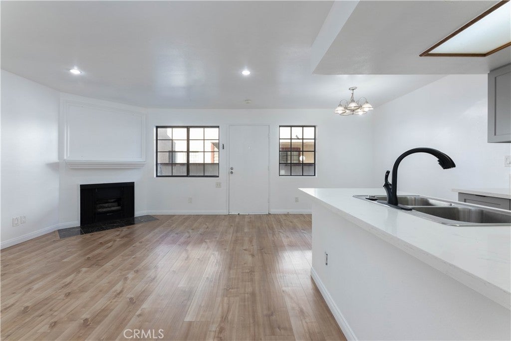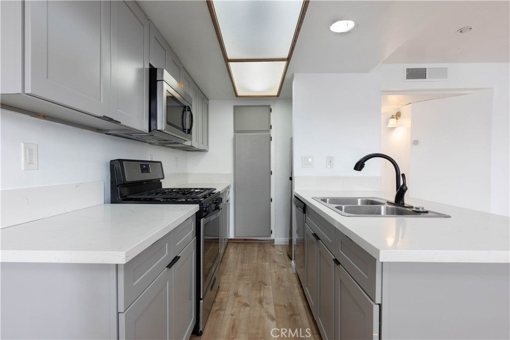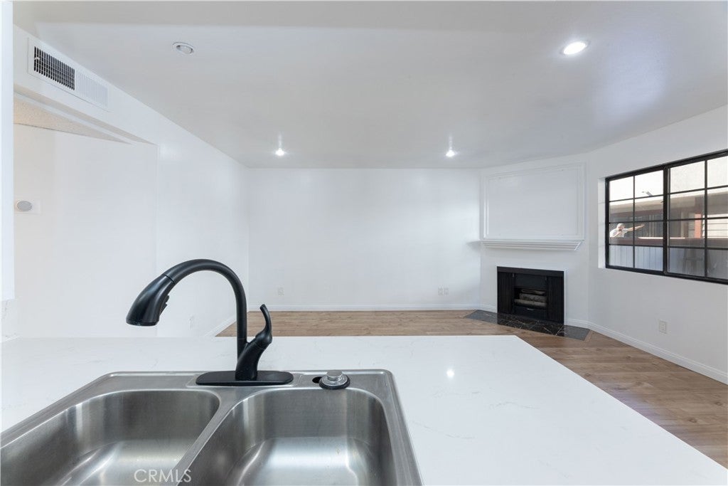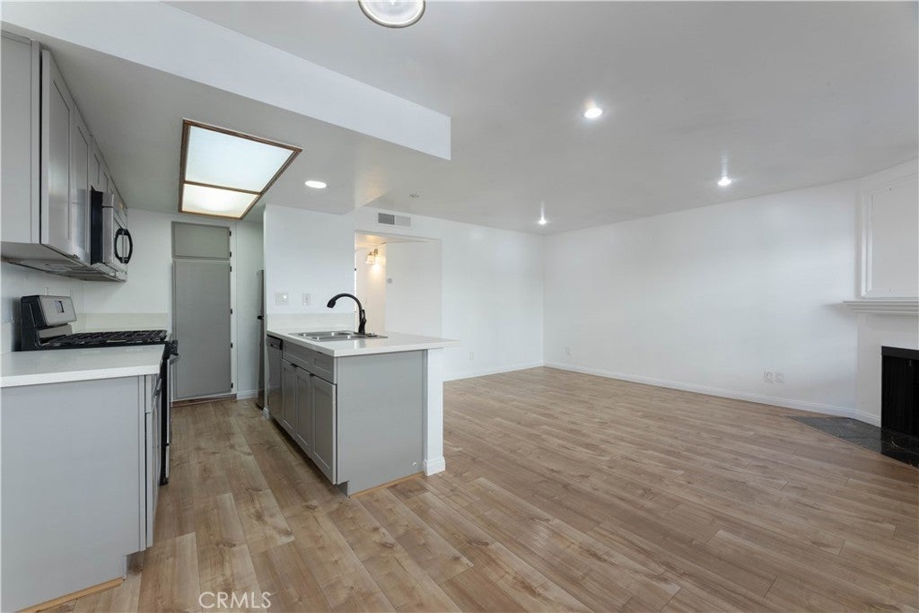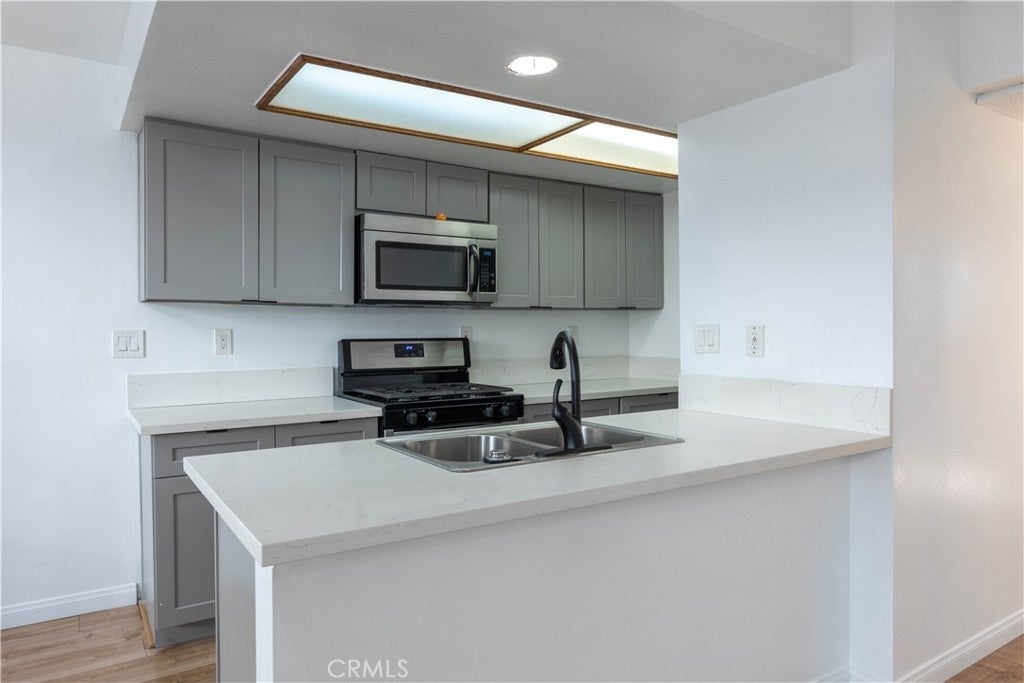 This lower-level 1 bedroom, 1 bathroom condo offers 687 square feet of practical living space with a front patio that faces the courtyard. The living room includes a gas fireplace, recessed lighting and laminate flooring throughout. The kitchen features updated cabinetry, quartz countertops and stainless steel appliances. The bedroom includes a walk-in closet, and the bathroom has been refreshed with an updated vanity, mirror and light fixture. The interior has been freshly painted. Additional features include in-unit laundry hookups, two tandem parking spaces in gated underground parking and a private storage unit. Conveniently located near the 405 and 101 freeways, Lake Balboa Park, Woodley Golf Course, Van Nuys Airport, and Cal State Northridge. Great opportunity for a starter home or for anyone looking to downsize.