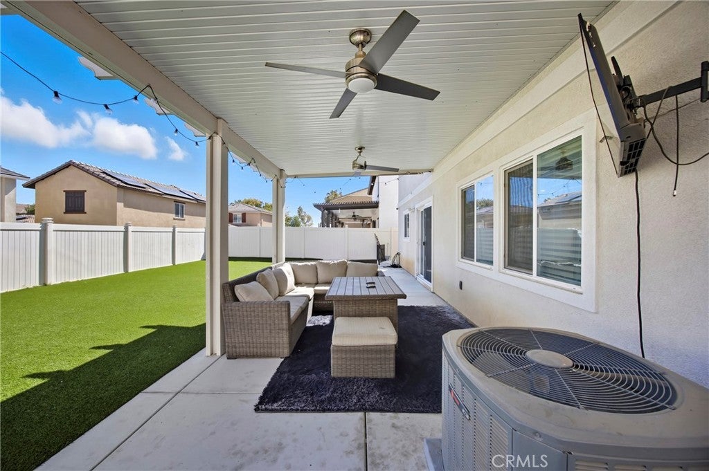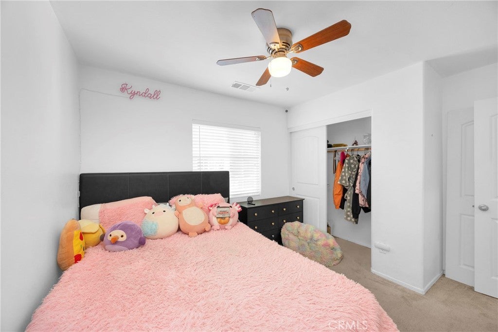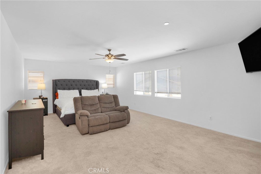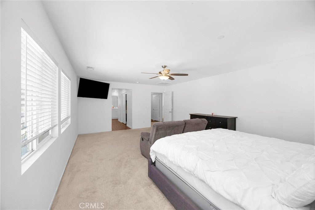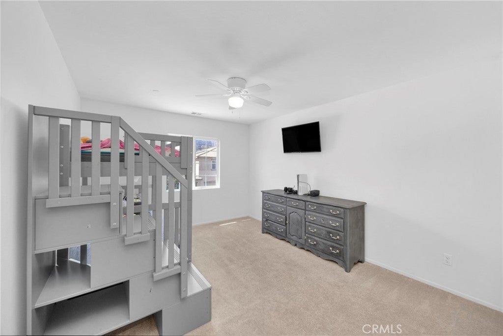 Welcome to Meadow Creek – where comfort meets contemporary living. This stunning 4-bedroom, with 1 on the first floor, and 3-bath home is nestled within the highly desirable gated community of Meadow Creek. Designed with an open-concept layout, the spacious living and dining areas flow seamlessly together—ideal for both everyday living and entertaining guests. The modern kitchen features sleek countertops, stainless steel appliances, and plenty of cabinetry for storage. Upstairs, a large loft offers flexible space—perfect for a home office, playroom, or media area. The primary suite serves as a relaxing retreat with a generous walk-in closet and a spa-inspired ensuite bathroom. Residents enjoy exclusive access to resort-style amenities, including a sparkling pool, spa, clubhouse, BBQ area, playground, and fully equipped fitness center—all within this private gated enclave. Prime Location: Conveniently located near premier shopping, dining, and entertainment, this Meadow Creek home also offers easy access to the 60 Freeway and is within walking distance to Hidden Springs Elementary, Vista Heights Middle, and Canyon Springs High School—plus just 12 minutes from UC Riverside. This property also has solar! Experience the perfect blend of style, comfort, and community at Meadow Creek.