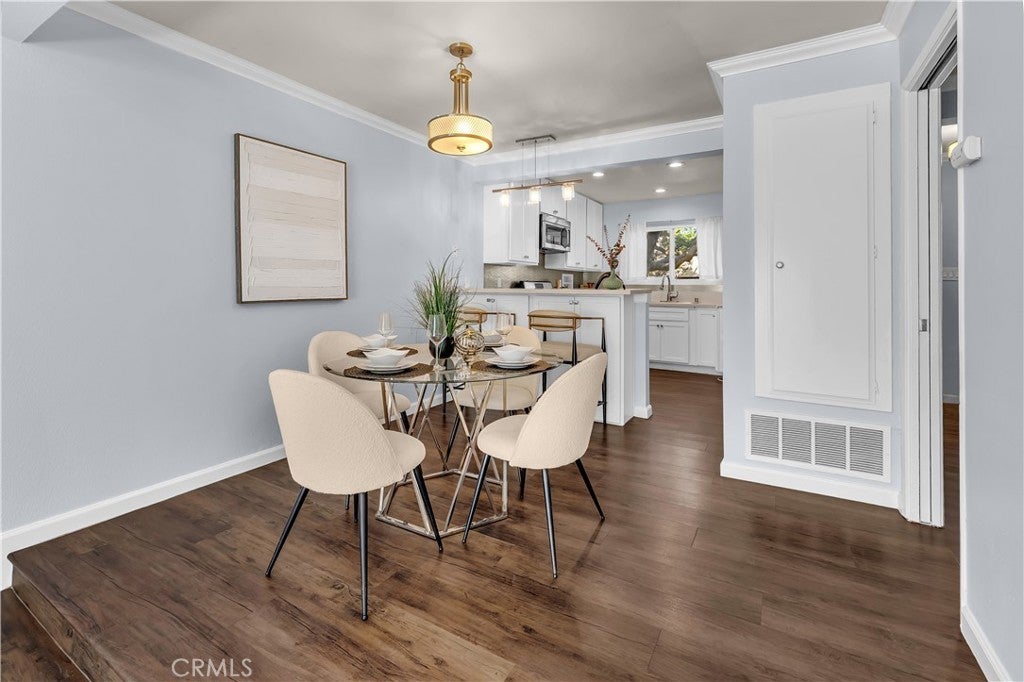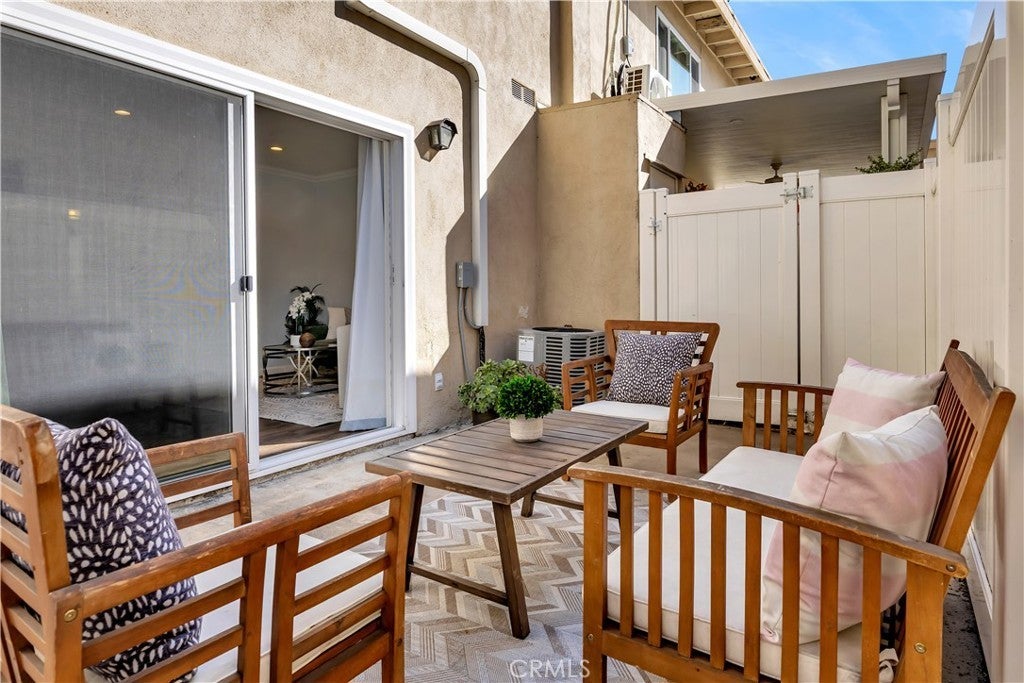 Beautifully remodeled and upgraded 2 bedroom, 2 bath, condo nestled in a peaceful complex with lush landscaping in northeast Santa Ana. Enjoy easy access to shopping, dining, freeways and schools in the Tustin School District. Also just minutes from Old Towne Orange, Downtown Santa Ana, and Main Place Mall. Welcome home to this stunning, move-in ready, two-story unit offering the perfect blend of modern style and comfort. The updated kitchen boasts quartz countertops, white shaker cabinets, and stainless steel appliances. Enjoy a nice breakfast bar with plenty of under-counter storage and separate dining area ideal for family meals. Step-down to find a bright and open living room with recessed lighting and sliding glass doors that lead to a nice sized private patio, perfect for your morning coffee. The entire first level features luxury vinyl, water-resistant flooring and brand new carpeting upstairs. Both bathrooms have been tastefully remodeled with contemporary fixtures and tile work. Upstairs the bedrooms offer ample natural light, generous closet space and the primary bedroom offers a peaceful, tree lined view of the green area. Also, conveniently located upstairs is a stackable washer and dryer. The entire home received a fresh coat of paint and been upgraded with central air conditioning for those hot summer California days! This is the perfect turnkey home you’ve been waiting for – move right in and start living your best life!
