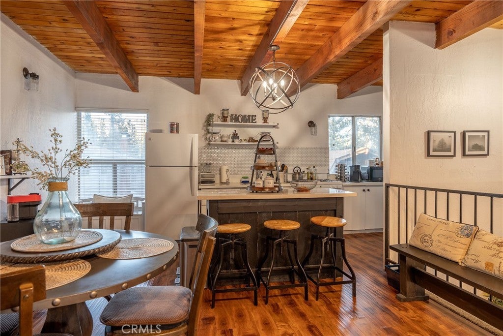 • Interior FeaturesBreakfast Bar, Eat-in Kitchen, All Bedrooms Down, Beamed Ceilings
