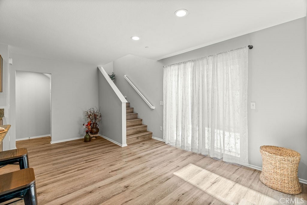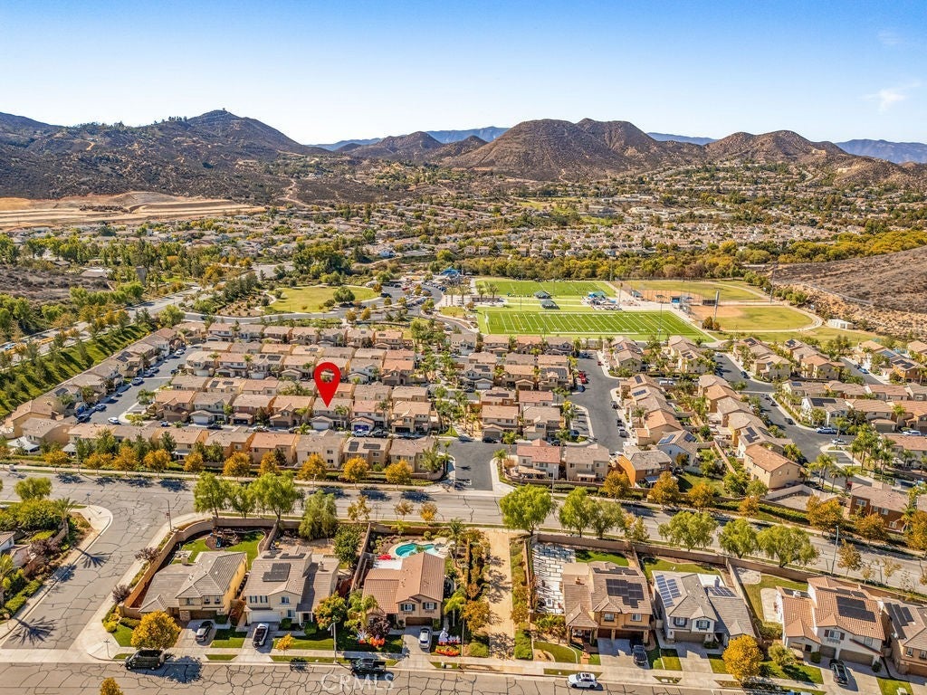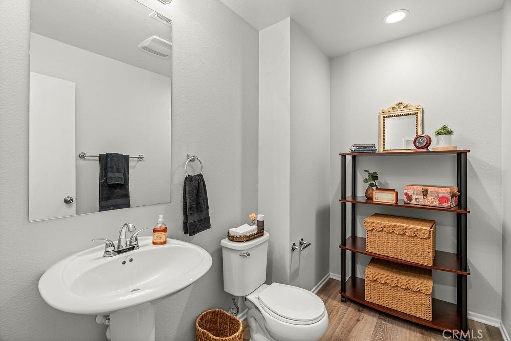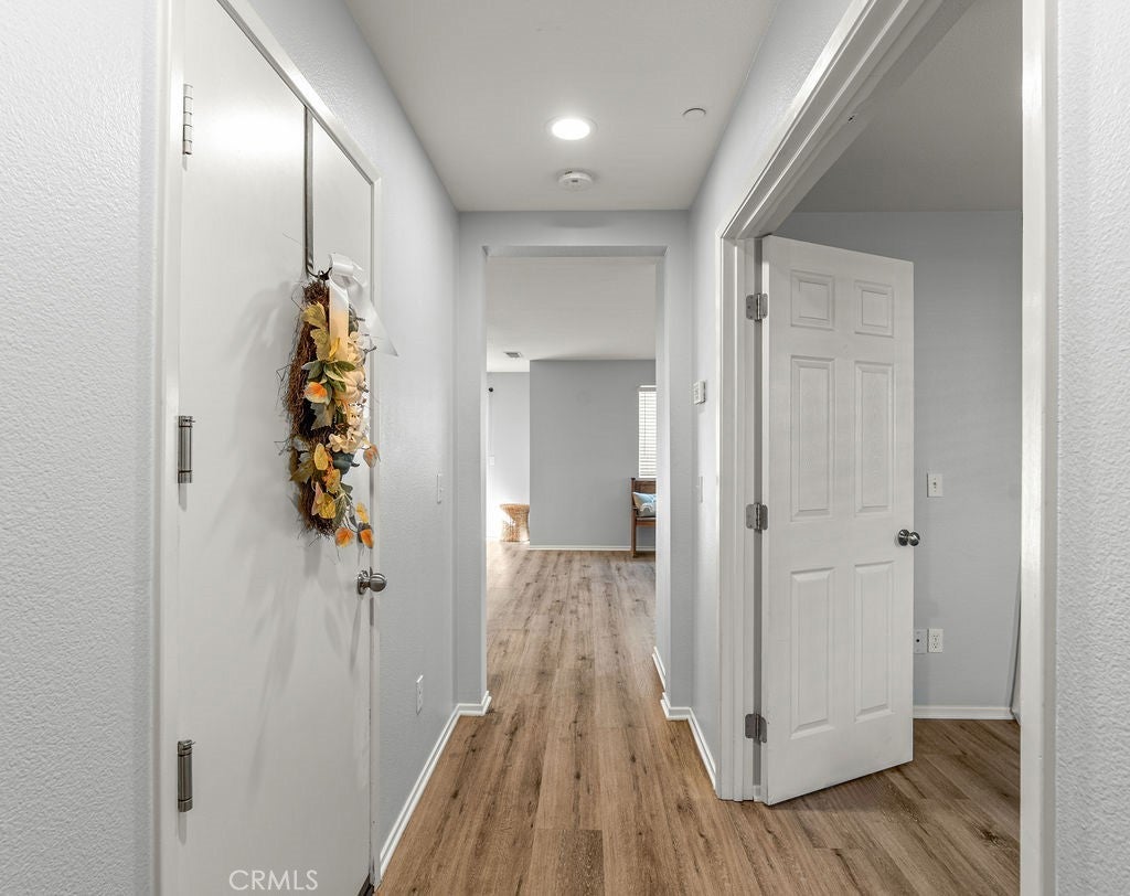 Nestled in the vibrant Canyon Hills neighborhood - presenting 34169 Carissa Dr, a beautifully maintained 3 bedroom, PLUS a downstairs multi-purpose room w/closet, 2.5 bath residence offering a stylish well-appointed floor plan. The open-concept layout is filled with natural light and provides a welcoming atmosphere for daily living or entertaining guests. Beautiful water & scratch proof laminate wood floors have been newly installed throughout the 1st and 2nd floors creating a cohesive modern style. The bright and open kitchen features maple cabinetry, granite counters, a large center island accommodating 4+ bar seating with inset stainless steel farm sink; stainless-steel free-standing stove, microwave, built-in duo trash bins, and a separate pantry. Ideally located on the 1st floor is a multi-purpose room to use as a downstairs bedroom, home office, or family/den space. There is also a 1/2 bath located downstairs. Upstairs are 3 bedrooms. The spacious primary en-suite features dual sinks, tub, walk-in shower & a large walk-in wardrobe. Two add'l bedrooms share a full bath with tub/shower combo. All bedrooms have ceiling fans and ample window exposure. Conveniently located on the 2nd floor is the laundry room. The patio features concrete patio, tropical landscaping, and artificial turf creating a very low-maintenance yard, perfect for families seeking style and convenience. Enjoy a family-friendly setting with access to clubhouse, 3 pools, multiple playgrounds, sports fields, dog parks, walking trails, and a splash pad—ideal for outdoor enthusiasts who appreciate active amenities. With tree-lined streets and top-rated local schools nearby, this home combines comfort, community, and outstanding value and is centrally located between the 15 and 215 freeways for your easy commute. Schedule your private showing to discover what makes this Lake Elsinore gem truly special.