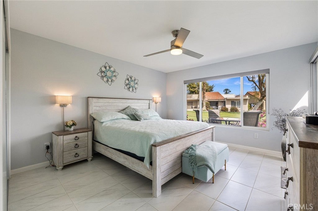 Welcome to 77386 Preston Trail, a beautifully remodeled 2 bed, 1 bath end unit, perfectly situated on a large green space with plenty of privacy and views of the palm tree skyline. Palm Desert Resort Country Club (PDR) is home of the largest pickleball club in the valley. This turnkey property has been remodeled floor to ceiling with upgrades to include: open concept kitchen, remodeled kitchen and bath, new closet doors, extended patio, newer appliances, washer & dryer and more. No expenses were spared on this charming condo. It's ready for a full time resident or to turn over as a seasonal rental property. It's fully stocked with all of the necessities needed to move in and call it home. The resort amenities are sure to make you feel like you're on vacation all year round. With 20 pools & spas, a champion golf course, 30 pickleball courts, 7 tennis courts, cafe, clubhouse, bocce ball & pro-shop, you're set to enjoy the resort lifestyle in PDR. Short term rentals are permitted. It's close to El Paseo, The Tennis Gardens, Coachella concerts, polo fields, Acrisure Arena and all of life's conveniences.