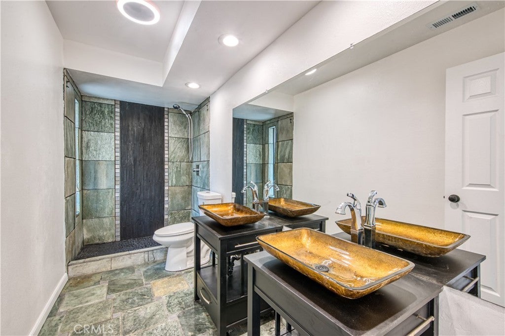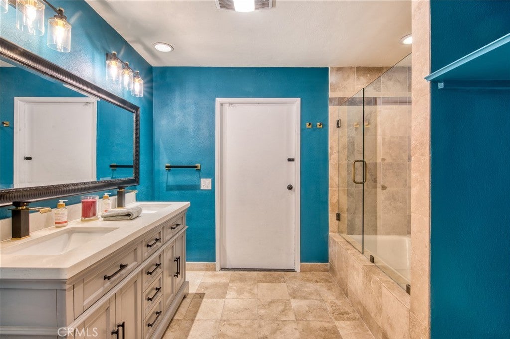 Welcome to this beautifully remodeled home in the highly desirable LAKE PARK community of LAGUNA NIGUEL. Ideally located at the end of a quiet CUL-DE-SAC overlooking YOSEMITE PARK, this expanded and fully permitted residence offers 5 BEDROOMS and 2.5 BATHS, blending comfort, versatility, and modern design. Step inside to light-filled living spaces enhanced by NEW RECESSED LIGHTING, UPDATED FIXTURES, LUXURY VINYL and CARPET FLOORING, and designer touches that bring warmth and sophistication. The SPACIOUS LIVING AND DINING AREAS flow seamlessly to a tranquil backyard, perfect for INDOOR-OUTDOOR ENTERTAINING. Enjoy a cozy GAS FIREPLACE surrounded by French doors opening to a private patio retreat. The CHEF-INSPIRED KITCHEN features NEW TILE FLOORING, CUSTOM CABINETRY and LIGHTING, and ALL-NEW STAINLESS-STEEL APPLIANCES designed for both elegance and function. A DOWNSTAIRS PRIMARY SUITE provides single-level living convenience with TWO CLOSETS—one custom walk-through and one extended hanging—while four additional bedrooms upstairs offer flexibility for guests, family, or office use. Upgrades include NEW PEX PLUMBING (hot and cold), FINISHED GARAGE with drywall, cabinetry, and custom lighting, NEW INTERIOR PAINT, and energy-efficient systems. Distinctive details such as a HIDDEN SAFE ROOM and multiple FRENCH and SLIDING PATIO DOORS, including access to an UPPER BALCONY, add to this home’s unique charm. Enjoy the best of South Orange County living—just steps from YOSEMITE PARK’S open green space, playground, and volleyball court, and directly across from the COMMUNITY POOL AND SPA. Lake Park residents love this neighborhood for its WALKABILITY, proximity to LAGUNA NIGUEL REGIONAL PARK AND LAKE, award-winning schools, shopping, dining, beaches, and quick access to the 73 TOLL ROAD. A rare combination of thoughtful expansion, stylish upgrades, and an unbeatable location—28182 CARPENTERIA COURT is ready to welcome you HOME.