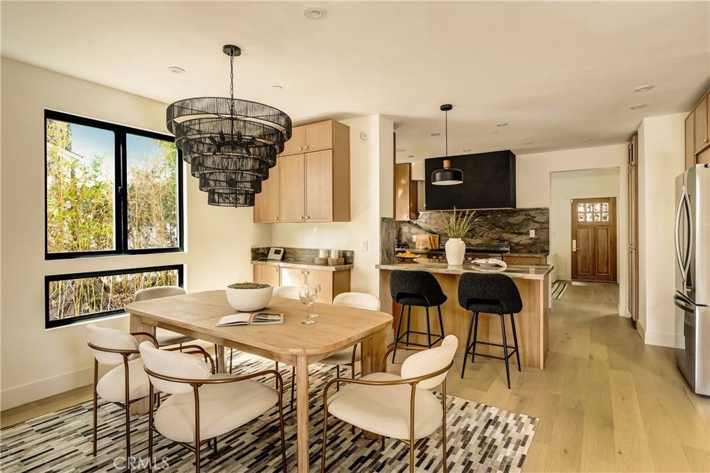This stunning newly remodeled three-bedroom, three-bathroom home has been curated to blend modern design with organic warmth. Every detail has been thoughtfully curated to create a space that feels both sophisticated and serene. This ideally situated urban location is just a few steps to the beach, the pier, all of the dining and shopping on Main Street and the famed 3rd Street Promenade. The open-concept living area showcases white oak floors and semi-custom white oak cabinetry, setting the tone for an airy, natural aesthetic. The chef’s kitchen features new appliances, Quartzite countertops, and a 48-inch professional range, ideal for those who love to cook and entertain in style. Each bedroom offers ensuite access, providing comfort and privacy for all. The primary suite is a true retreat, complete with a spa-like bath, walk-in shower, and freestanding soaking tub surrounded by elegant finishes. Outdoors, the newly landscaped yard invites relaxation and al fresco dining. The bonus flex space/garage (currently permitted as a garage and included in the living area for informational purposes) has been tastefully designed as a studio, game room, or creative workspace, expanding your options for living and entertaining. With the home measuring approximately 1,753 square feet per the assessor and the flex space/garage adding an additional 380 square feet, this property offers exceptional flexibility. Buyer may be able to convert the flex space/garage into an ADU. Buyer to investigate and satisfy themselves with the City Planning Department. With its blend of organic textures, modern design, and meticulous craftsmanship, this home embodies the essence of coastal elegance perfectly tailored for today’s lifestyle.