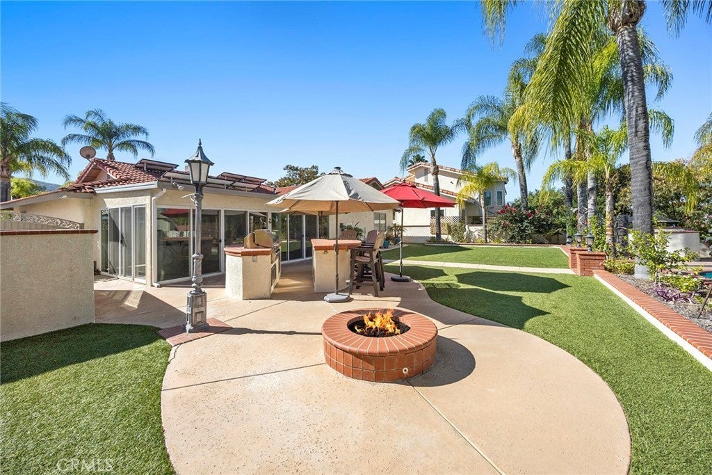 Welcome to your own private resort, where vacation living meets everyday comfort. This beautifully updated single-story home is perfectly positioned on a large, level cul-de-sac lot within the highly desirable guard-gated community of Canyon Lake. Surrounded by over twenty mature Queen palms, custom stamped concrete, and lush low-maintenance turf, this property exudes an effortless tropical elegance that immediately transports you into relaxation mode. Step inside and you’ll find a well composed floor plan with no interior stairs, cool tile flooring throughout, and newer dual-pane Pella windows and solar tubes that fill the space with natural light. The kitchen is both stylish and functional, featuring Brazilian granite countertops, a farmhouse sink, soft close cabinetry and premium appliances including a KitchenAid range and refrigerator, Bosch dishwasher, and built-in microwave. Every detail reflects thoughtful upgrades and modern comfort, from the whole-house fan and efficient pellet stove to central air and heat. Designed for entertaining, the backyard feels like a private oasis. A sparkling pool and spa—equipped with new heater and new pump—invite you to unwind under the palms, while the built-in outdoor kitchen with BBQ island, warming tray, and bar seating makes hosting effortless. Evenings can be spent gathered around the cozy in ground fire pit, while enjoying the easy indoor-outdoor flow that defines California living. Energy-efficient features include PAID OFF SOLAR PANELS and NEW whole house reverse osmosis water system, ensuring sustainable comfort year-round. The attached two-car garage offers epoxy floors, built-in cabinets, a workshop area, plus tons of storage space both inside and out. Located just minutes from Canyon Lake’s private golf course, boating, lodge and lakeside amenities—close to local wineries and casinos—this move-in ready home offers the perfect blend of luxury, leisure, and lifestyle. Every element has been designed to make daily life feel like an endless vacation, so make your best offer today before it is gone.