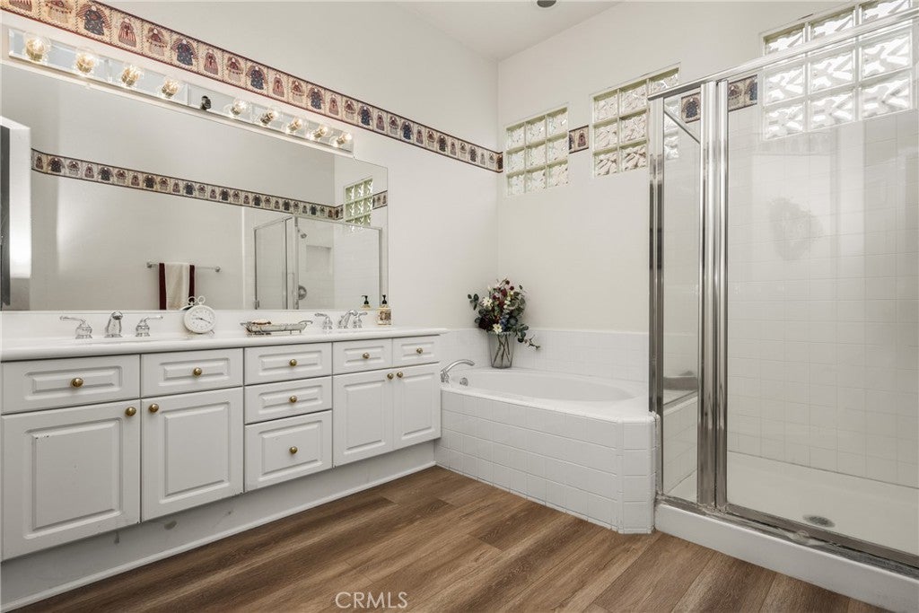 Welcome to this three bedroom, two bath single level home in the gated community of Kensington Park. Lovelingly maintained, this home has been refreshed with new luxury vinyl plank flooring throughout. Step inside to find an abundance of natural light that accucentuates the open floorplan. The spacious living and dining rooms lead into the family room that opens to casual dining and the kitchen conveniently located for both outdoor and indoor dining, what California living is all about. The expansive primary suite has a walk-in closet, bath with double sinks, separate bath and shower and private commode. Large secondary bedrooms are currently a home office and inviting quest quarters. Additionally, the 2-car garage has direct home access. This home is as funcitiinal as it is inviting. Beyond your front door, Kensington residents enjoy a sparkling pool and spa perfect for unwinding close to home. All of this is offered in a peaceful but well-connected community just minutes from local shopping, dining, parks and freeway access.