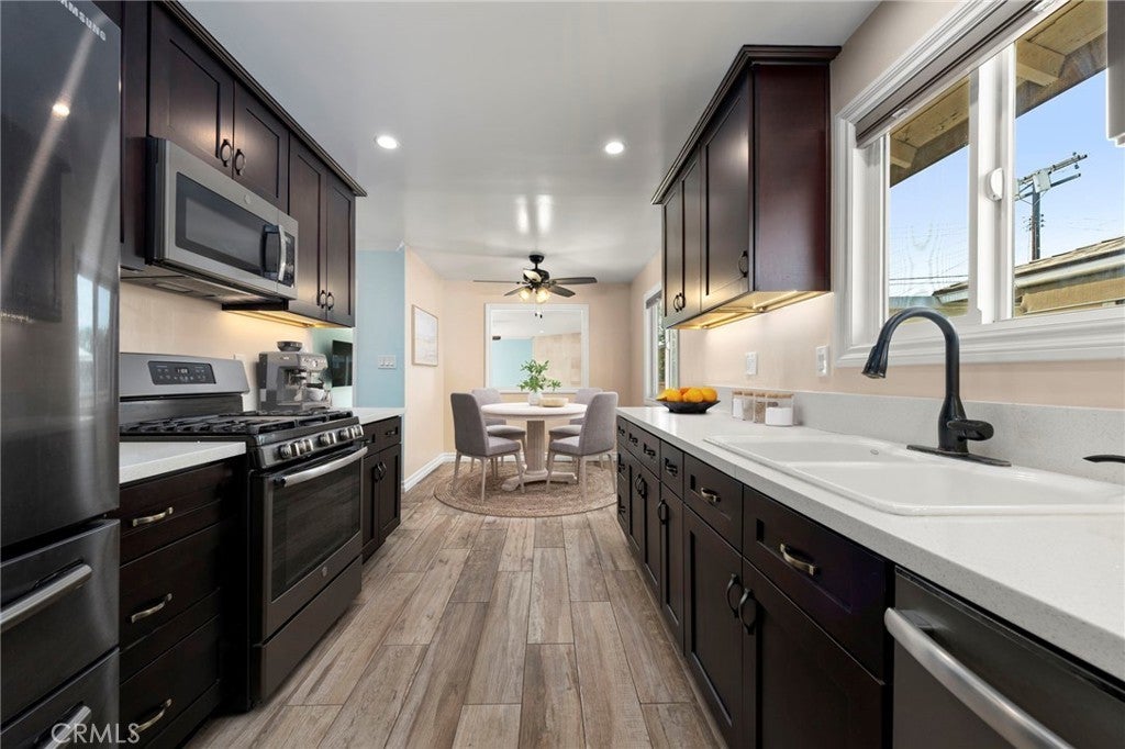 • Interior FeaturesBreakfast Area, Ceiling Fan(s), Eat-in Kitchen, Open Floorplan, Quartz Counters, Bedroom on Main Level, Galley Kitchen