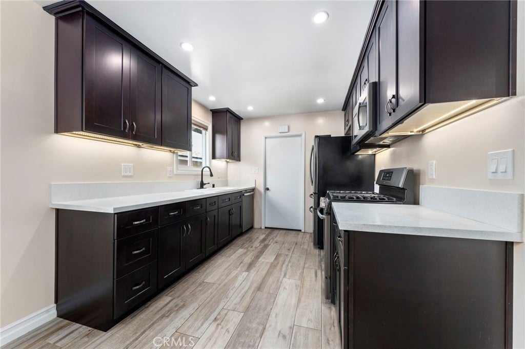 A Rare Offering in Paramount’s Coveted Hollydale Neighborhood. Lovingly cared for by the same family for generations, this beautifully maintained 4-bedroom, 2-bath home embodies true pride of ownership. Thoughtfully expanded to include an oversized, open family room with direct access to the backyard, the home’s flexible floorplan offers exceptional comfort and connection — ideal for both everyday living and entertaining. At the heart of the home, a beautifully remodeled kitchen shines with shaker cabinetry, quartz countertops, tile flooring, and stainless steel appliances. Both bathrooms have been tastefully updated with modern fixtures and exquisite tilework, creating spa-like spaces of refined simplicity. Recent upgrades bring peace of mind and long-term value — including fresh paint, double-paned windows, updated plumbing, landscaped yards with automatic irrigation, and more. Set on a quiet cul-de-sac in the highly desirable Hollydale neighborhood, this residence enjoys unbeatable access to Hollydale Regional Park, Hollydale School, and the Hollydale Library — all just moments away. Homes in this established neighborhood rarely come to market, making 724 Treves Avenue a truly special opportunity to own a lovingly preserved home in one of Paramount’s most cherished enclaves.