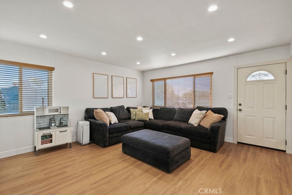 This charming California Bungalow is the perfect blend of historic charm and modern convenience. Complete with 3 spacious bedrooms and 2 baths, this home is perfect for a whole host of buyer profiles. An elegant and crisp front and side elevation make this home a showstopper from the minute you pull up. Boasting a highly desirable corner lot, this home sets up perfectly for a future ADU addition. With frontage on two sides, one could imagine a beautiful independently accessed ADU. Clean and manicured landscape, fresh clean paint, and an extra wide driveway with extra parking, give the front elevation plenty of utility without losing any character or charm. Enter an open and expansive family room, complete with recessed LED cans, large windows, wood vinyl floors, and an open concept layout perfectly located next to the kitchen and dining nook. Kitchen is spacious and finished with wood grain custom cabinets, Corian counter tops, tile splash, double bay sink, and quality appliances. The hall bath is finished with stain grade single vanity, Corian tops and a tile surround tub shower combo. All bedrooms are spacious and well lit due to the upgraded dual pane vinyl windows, wood slat window coverings, and wood vinyl floor. Theres no carpet anywhere in the house!!! The garage is a hobbyist’s dream with clean epoxy floors, fully finished drywall, cabinet storage, overhead lighting, pull down attic access, and direct home and backyard access. And last but not least, the sprawling back yard is a dream. With tons of grass and room to run, this yard is the benchmark for opportunity. Entertainment and parties are no problem with the spacious covered patio and rolling manicured grass. It also opens the possibility for large expansion, and/or future ADU opportunities. Other great features include, extra driveway parking, dual pane windows, ceiling fans, ceiling light fixtures, newer LED recessed cans, upgraded base, window coverings, spacious covered patio, potential RV or auto parking, and so much more. Call immediately for details..