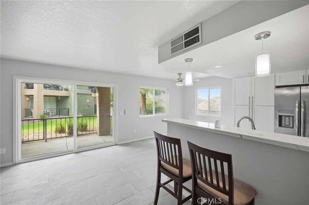 (2616 Avenida Del Vista #104, Corona, Ca). This fully renovated condo offers modern comfort and style throughout. Features include new windows, flooring, interior paint, and a new patio door. The open-concept living space has a fireplace flowing into the dining area and kitchen. The kitchen has granite countertops, a breakfast bar, and ample cabinet space, with refrigerator, stove, microwave, washer, and dryer. Both bedrooms are spacious with generous closet storage, and the two updated bathrooms feature a soaking tub in one and a walk-in shower in the other. Central A/C and heating provide year-round comfort. Amenities: pool and spa, fitness center, basketball and tennis courts, clubhouse, walking trails, and two dog parks for large and small pets. One assigned covered parking space.