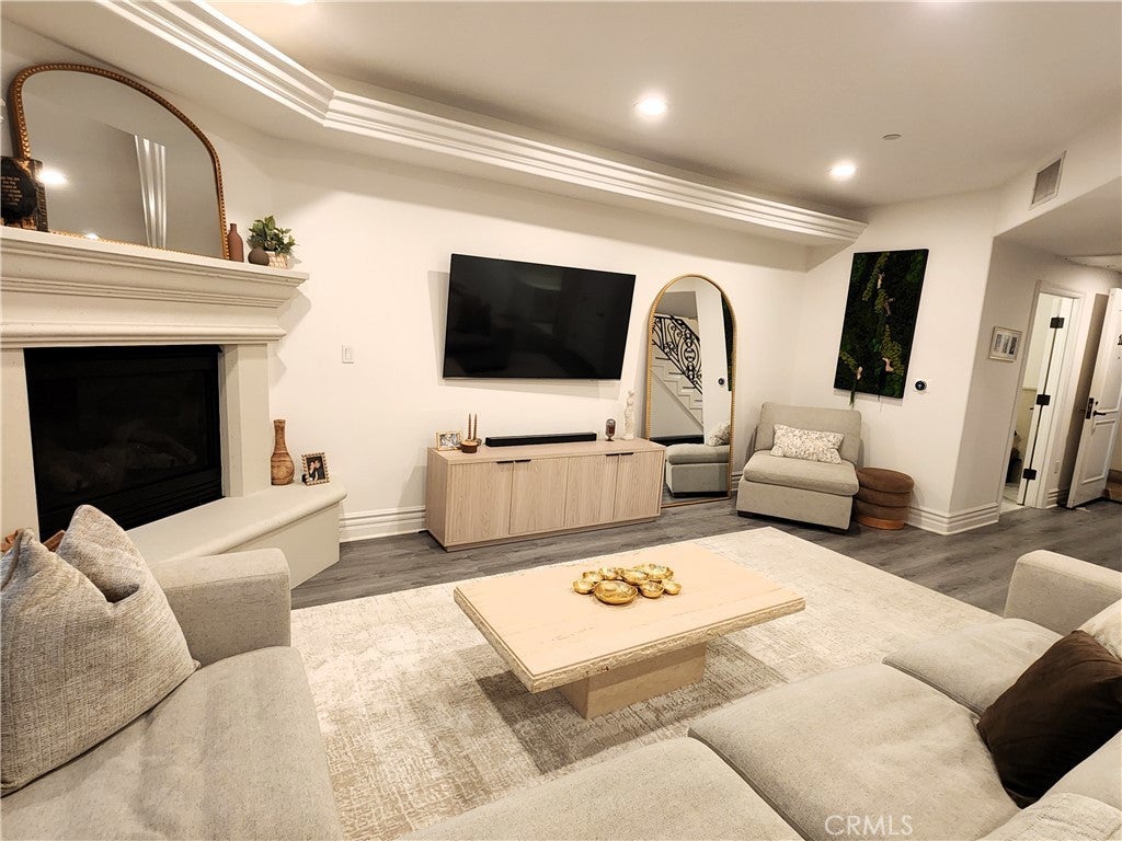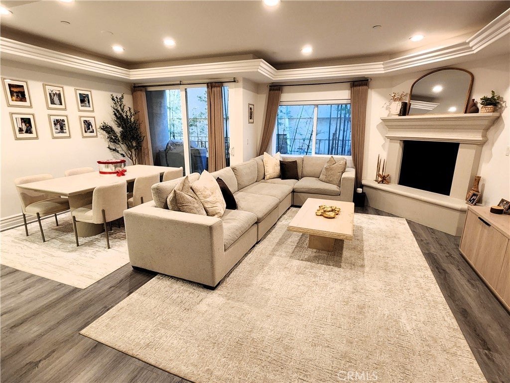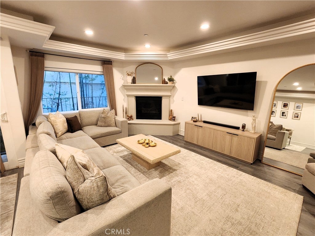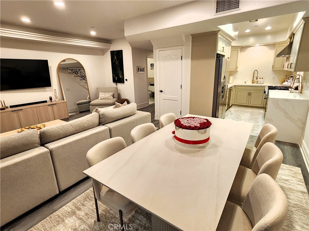 Price Improvement! Experience refined living in this beautifully remodeled two bedroom, two-and-a-half bath "townhome style" residence, perfectly blending contemporary design with timeless sophistication. Thoughtfully designed, both bedrooms are located on the upper level, each featuring its own elegantly appointed en-suite bath, while a chic powder room on the main floor offers convenience for your guests. The remodeled gourmet kitchen showcases high-end Viking appliances, custom cabinetry + ample "Calacatta Style" quartz counter-tops with a waterfall edge. The kitchen flows seamlessly into the dining and living areas. The open-concept design is enhanced by custom crown molding, refined finishes, and a cozy gas-burning fireplace that anchors the living space with warmth and style. Additional amenities: central air conditioning; luxury vinyl flooring; stylish porcelain flooring in kitchen and powder room; stackable washer/dryer closet on 2nd floor; voice command lighting and window coverings; private balcony; exceptional closet space (2 walk-ins in primary bedroom) + additional mirrored wardrobe; spacious walk-in in guest bedroom; dual vanity in primary bedroom + soaker tub & separate shower; 2 secured/assigned tandem covered parking spaces & the list goes on... Centrally located near La Cienega’s famed Restaurant Row, The Beverly Center, The Grove, and more — this exceptional home combines modern living with unbeatable convenience.