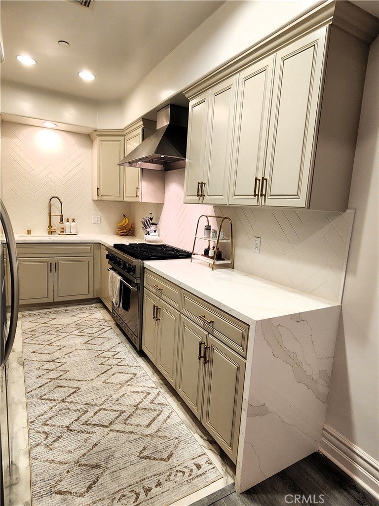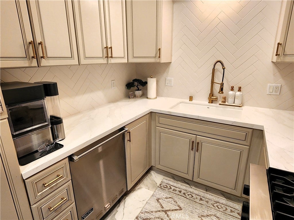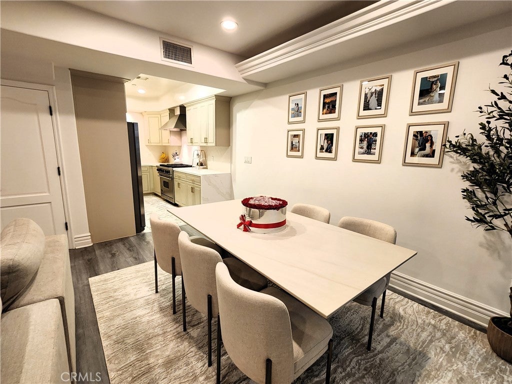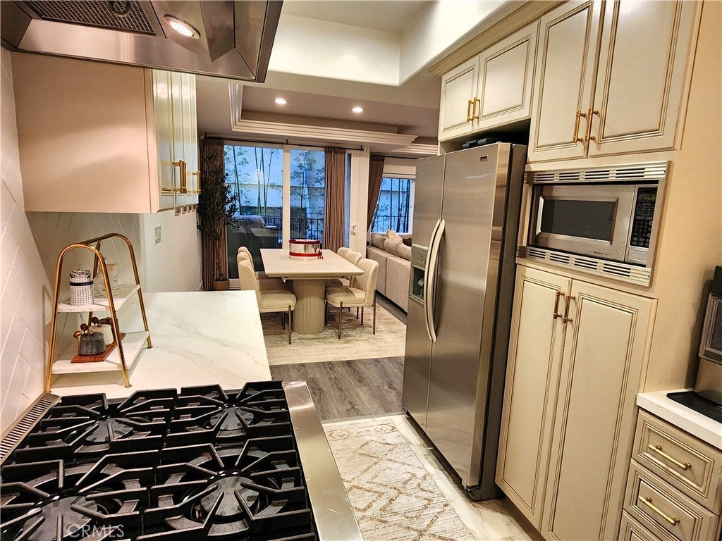 Price Improvement! Experience refined living in this beautifully remodeled two bedroom, two-and-a-half bath "townhome style" residence, perfectly blending contemporary design with timeless sophistication. Thoughtfully designed, both bedrooms are located on the upper level, each featuring its own elegantly appointed en-suite bath, while a chic powder room on the main floor offers convenience for your guests. The remodeled gourmet kitchen showcases high-end Viking appliances, custom cabinetry + ample "Calacatta Style" quartz counter-tops with a waterfall edge. The kitchen flows seamlessly into the dining and living areas. The open-concept design is enhanced by custom crown molding, refined finishes, and a cozy gas-burning fireplace that anchors the living space with warmth and style. Additional amenities: central air conditioning; luxury vinyl flooring; stylish porcelain flooring in kitchen and powder room; stackable washer/dryer closet on 2nd floor; voice command lighting and window coverings; private balcony; exceptional closet space (2 walk-ins in primary bedroom) + additional mirrored wardrobe; spacious walk-in in guest bedroom; dual vanity in primary bedroom + soaker tub & separate shower; 2 secured/assigned tandem covered parking spaces & the list goes on... Centrally located near La Cienega’s famed Restaurant Row, The Beverly Center, The Grove, and more — this exceptional home combines modern living with unbeatable convenience.