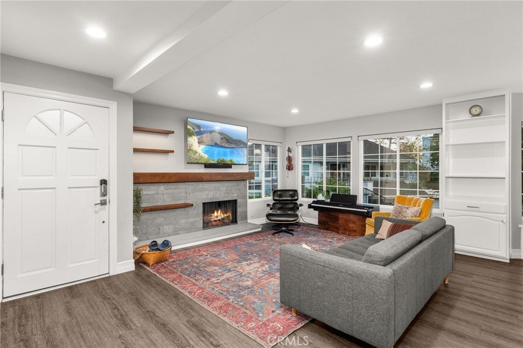 Discover a true hidden gem in North Azusa’s Rainbow Lake gated community. This beautifully remodeled, single-level condo—with no interior steps and only a short exterior staircase leading to the driveway—offers one of the most coveted locations in the neighborhood, featuring unobstructed lake views from the family room, dining area, patio, and primary bedroom. The spacious floor plan includes 1,489 square feet with three bedrooms (one currently opened and used as a den), two fully upgraded bathrooms, a welcoming family room with a custom fireplace, an open dining area, and a stunning remodeled kitchen. The home underwent an extensive renovation in 2018, including new flooring throughout, all new drywall and interior paint, new ceilings, new windows, new exterior, interior, and closet doors, new recessed lighting, fixtures, fans, switches, and new blinds. The family room also received a beautifully redesigned fireplace with a new custom hearth, mantle, and shelving, along with automated window blinds. In 2020, the kitchen and guest bathroom were completely remodeled with new appliances, new cabinetry, quartz countertops, new sinks, under-cabinet lighting, updated electrical, new tile flooring and backsplash, fresh interior paint, a refinished tub, and a new vanity in the guest bath. In 2022, the primary bathroom was fully remodeled down to the studs, featuring new flooring, tile, walls, paint, a luxurious steam shower, and new sinks, vanity, and mirror. Additional conveniences include an indoor laundry closet, central A/C and heating, an attached 1-car garage with driveway, plus an additional detached 1-car garage. The peaceful Rainbow Lake community offers a unique environment perfect for relaxing walks around the water, fishing, picnicking, and enjoying nature. Located near the Gold Line, Azusa Pacific University, Citrus College, The San Gabriel River, and the Angeles National Forest, this beautifully updated lake-view home is truly a must-see!