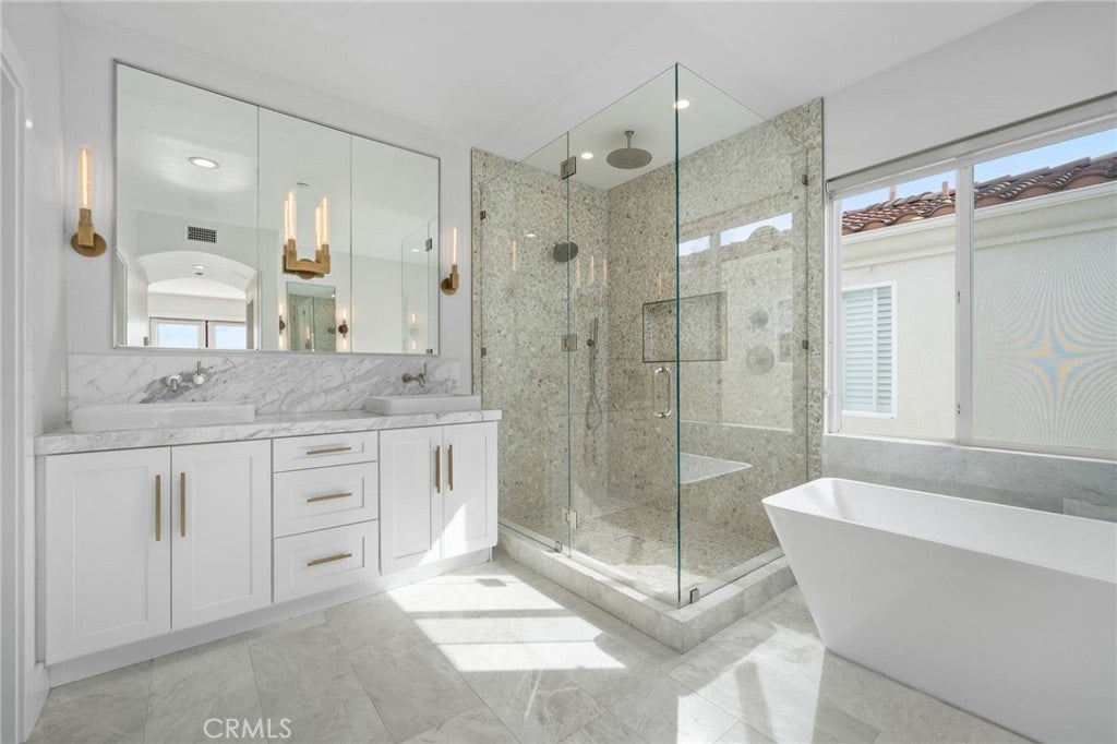 Discover your coastal escape in the gated community of Pacific Crest! This remodeled 3,122 sq. ft. residence sits on an elevated lot, capturing sweeping views of the hills and canyon. Step inside and feel the light. Soaring ceilings and walls of windows create an airy main living space, while custom stone floors add elegance throughout the first level. Need flexibility? A downstairs bedroom, 3/4 bath, and bonus room provide options for guests, a home office, or a gym. The spacious kitchen is built for entertaining. An oversized marble island anchors the room, complemented by a walk-in butler’s pantry and premium Thermador appliances like double ovens, a steam oven, and built-in refrigerator. Just beyond, the family and dining area gather around a sleek modern fireplace. Upstairs, hardwood floors flow into bright secondary bedrooms and a Jack-and-Jill bath. The primary suite feels like a retreat, offering a private balcony with peek-a-boo ocean views and a spa-like ensuite with soaking tub, dual vanities, and a tiled shower featuring three showerheads. The backyard is pure paradise. Imagine hosting friends and family by the built-in BBQ, then cooling off in the resurfaced pool and spa. A waterfall, slide, and firepit turn everyday life into vacation living. Practical upgrades like PAID solar panels and a full PEX re-pipe bring peace of mind. All of this is just minutes from downtown San Clemente, world-class beaches, surf breaks, dining, and boutiques. A private oasis. An incredible coastal opportunity! Matterport Tour https://my.matterport.com/show/?m=R921SSuYHxD Video Link https://video-playback.web.app/wTX6tF4A7Z4uxsNu00302tm4A5US8qpKW00GLr02Kl01702gM